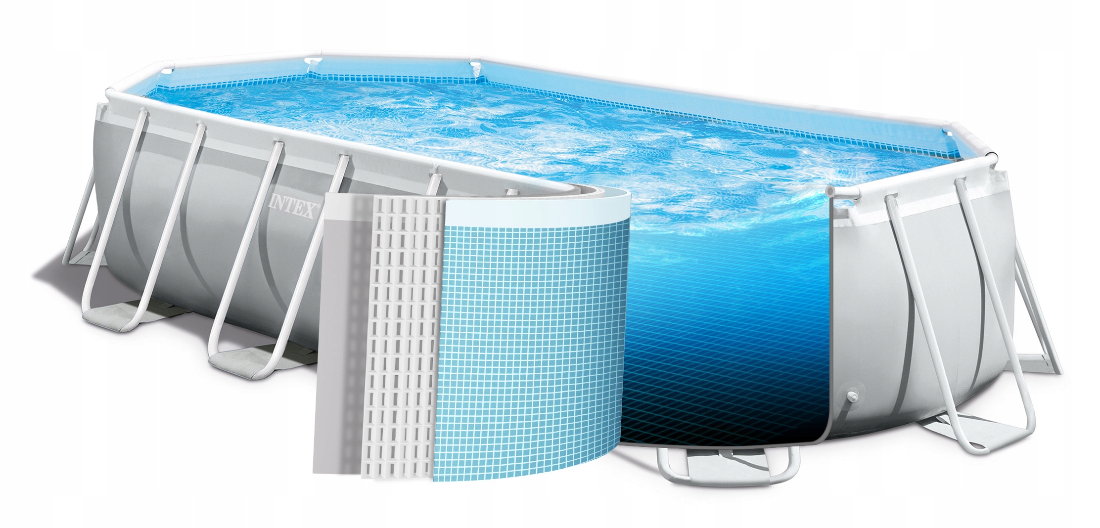 - Оболочка басейну виготовлена з міцного та довговічного тришарового ПВХ з нейлоновою сіткою, що зміцнюється між шарами