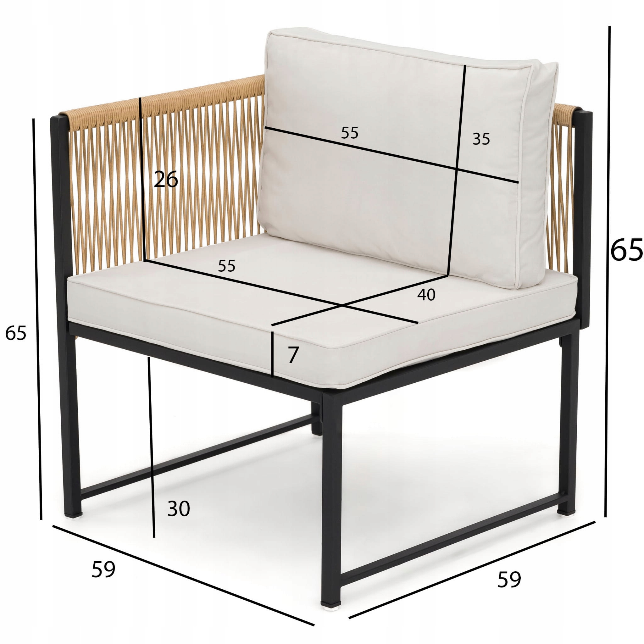Садовий комплект MADERA 2023-77, рамка чорна, подушки беж
