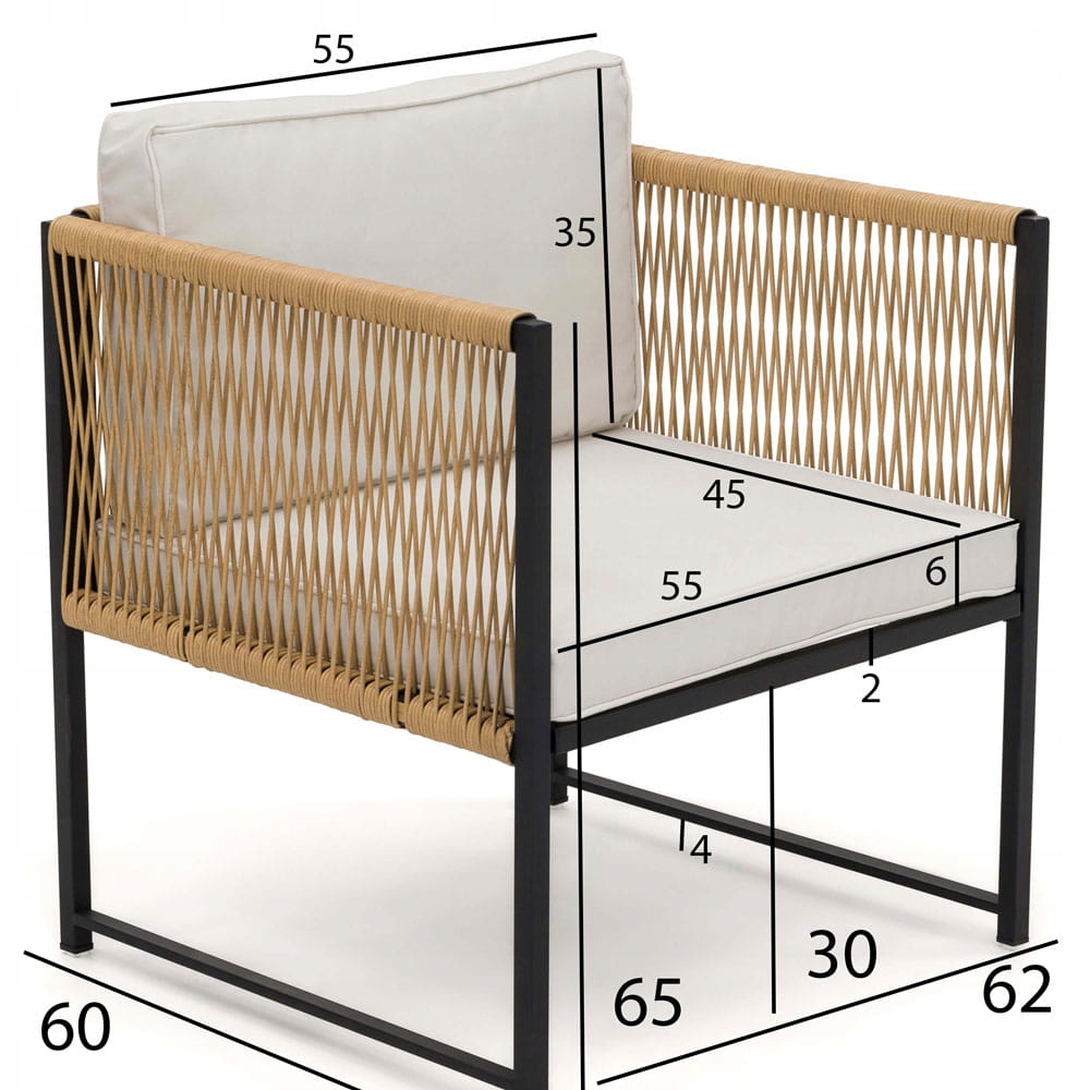 Садовий набір MADERA виготовлений з матеріалів найвищої якості, щоб задовольнити найвибагливіших покупців. Зручні подушки бежевого кольору ідеально вписуються в різні види садів, що робить цей набір ідеальним рішенням для будь-якого типу саду. . У комплект входить тримісний диван з пуфом, завдяки якому ви зможете відпочивати щодня, а також зручне крісло і стіл з дерев'яною стільницею, на якому ви можете можна розмістити різні види посуду.