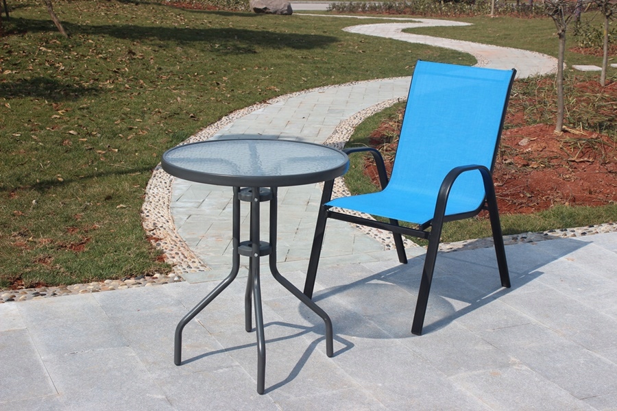 Зручне крісло, ідеальне для вашого саду. Рама має подвійне порошкове покриття, що ідеально адаптує цей продукт для використання в приміщенні та на вулиці. Сидіння та спинка виготовлені з чорної еластичної текстильної оббивки для максимального комфорту. Має дві бічні опори. Використані матеріали не вимагають частого догляду, стійкі до погодних умов і не вимагають особливого догляду. Ніжки додатково оснащені пластиковими заглушками.