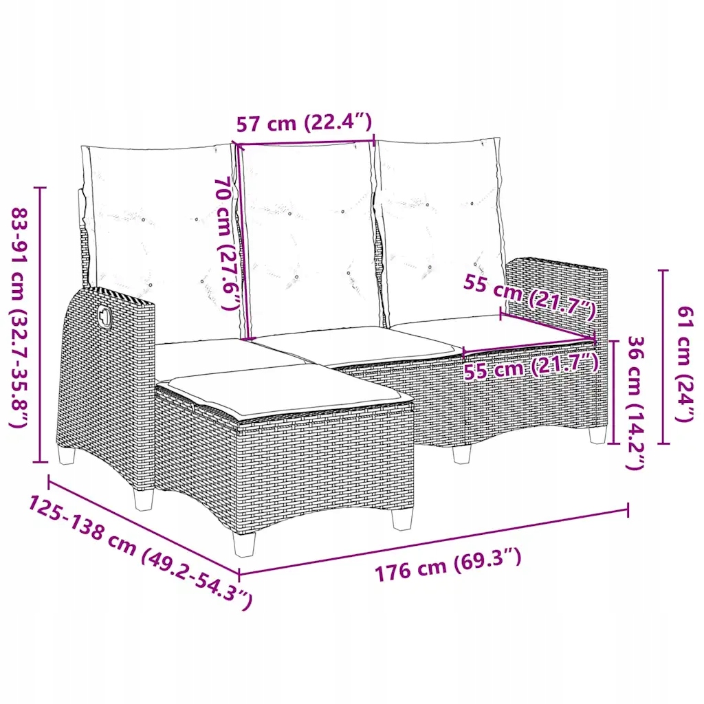 Відпочиньте та насолоджуйтесь часом на свіжому повітрі з цим зручним розкладним садовим диваном із міцного поліетиленового ротанга. Відкрийте для себе новий вимір комфорту та стилю у своєму саду!