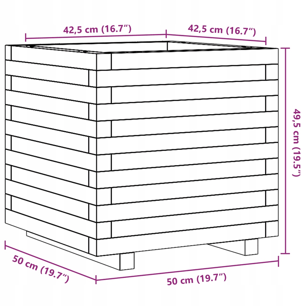 Горщик для квітів садовий, білий, 50х50х49,5 см, масив сосни