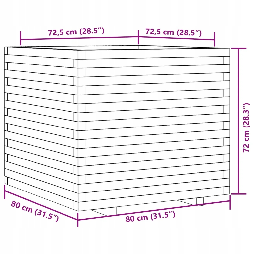 Горщик для квітів садовий, білий, 80x80x72 см, масив сосни