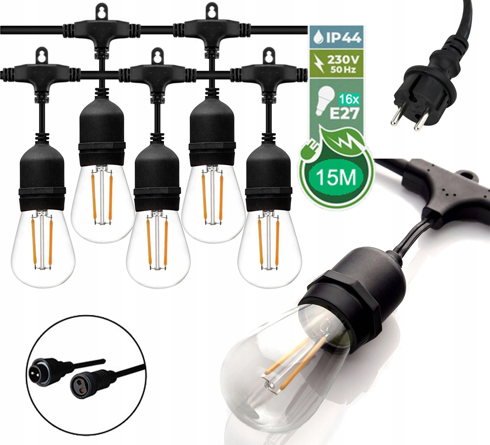 Садовий ланцюжок GIRLANDA 15 м E27 + вищевказані цибулини