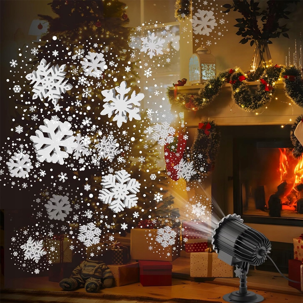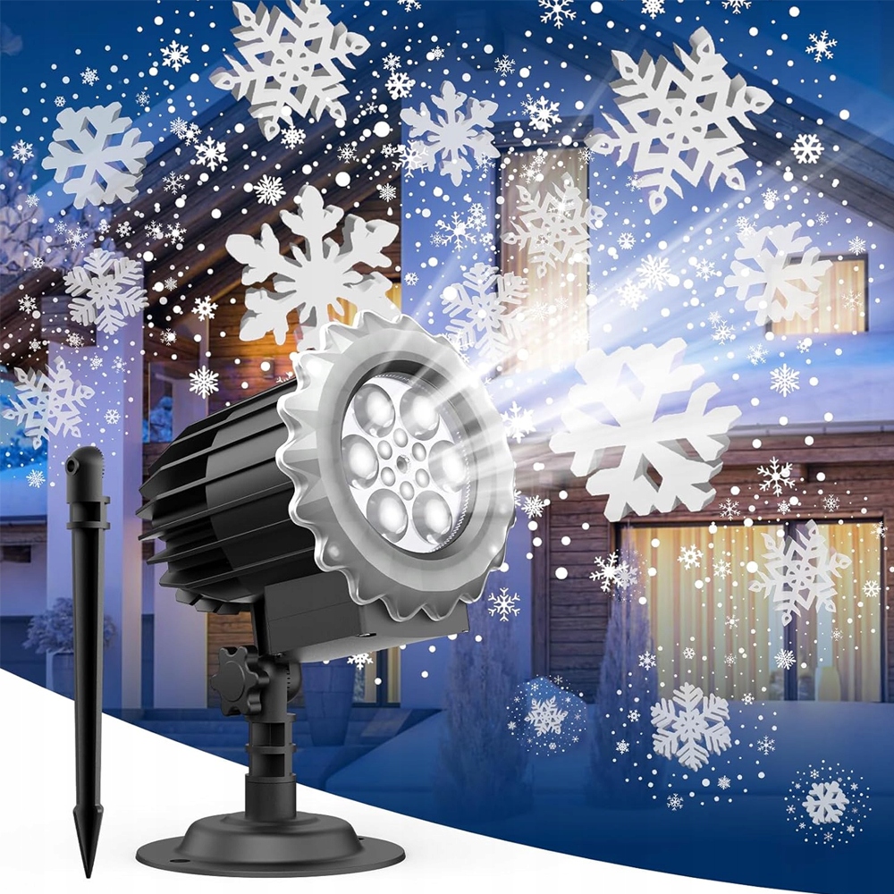 Цей світлодіодний сніговий проектор — це найшвидший спосіб наповнити ваше оточення чарівним різдвяним настроєм. Це ідеальне доповнення до різдвяних прикрас, як всередині, так і зовні. Для найкращого ефекту рекомендуємо відстань проекції від 3 метрів. Щоб насолодитися його довговічністю, уникайте падіння з висоти понад 2 метри та використовувати суцільні металеві заземлюючі шпильки.
