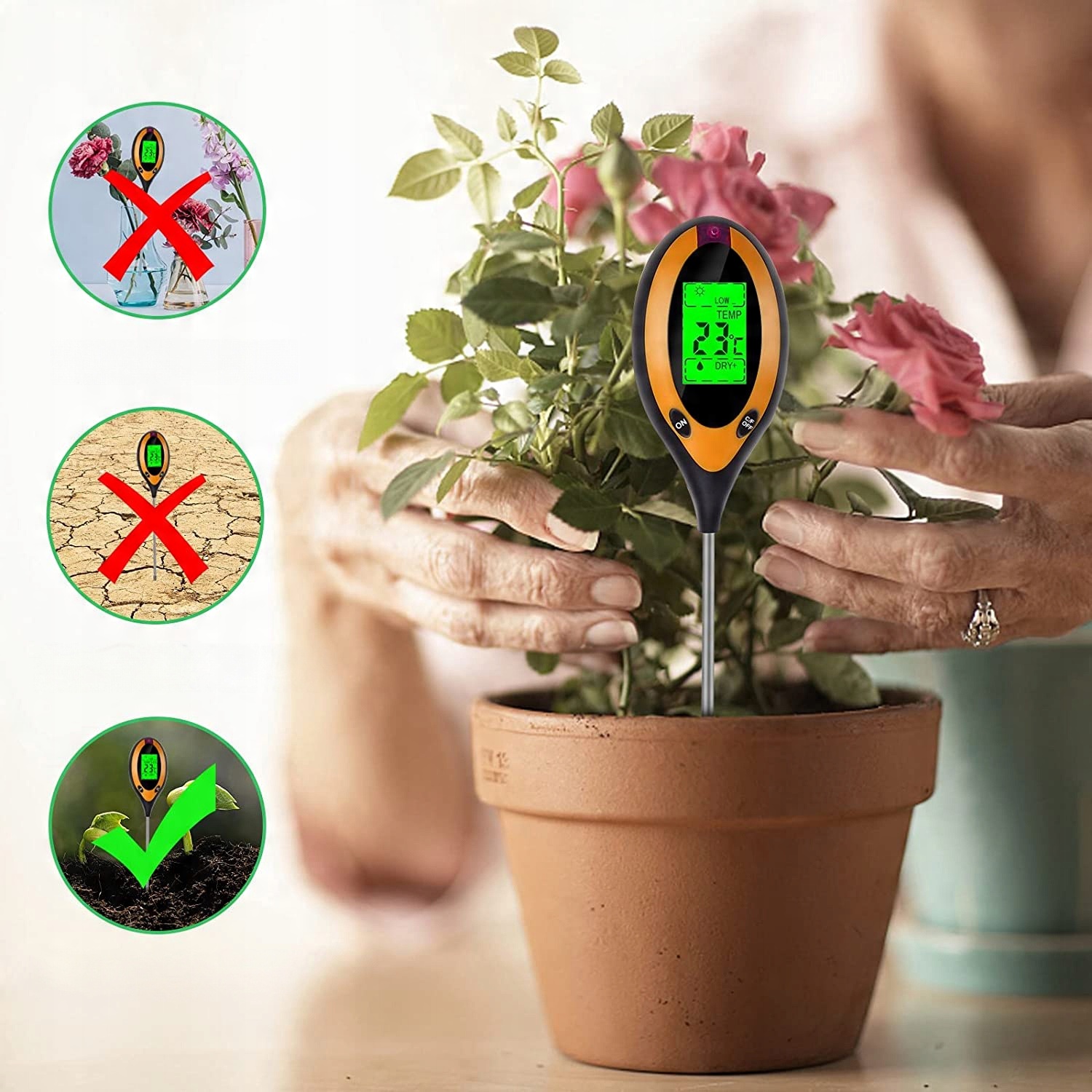 Електронний вимірювач кислотності, температури та вологості ґрунту - це прилад, завдяки якому Ви зможете професійно доглядати за своїми рослинами.