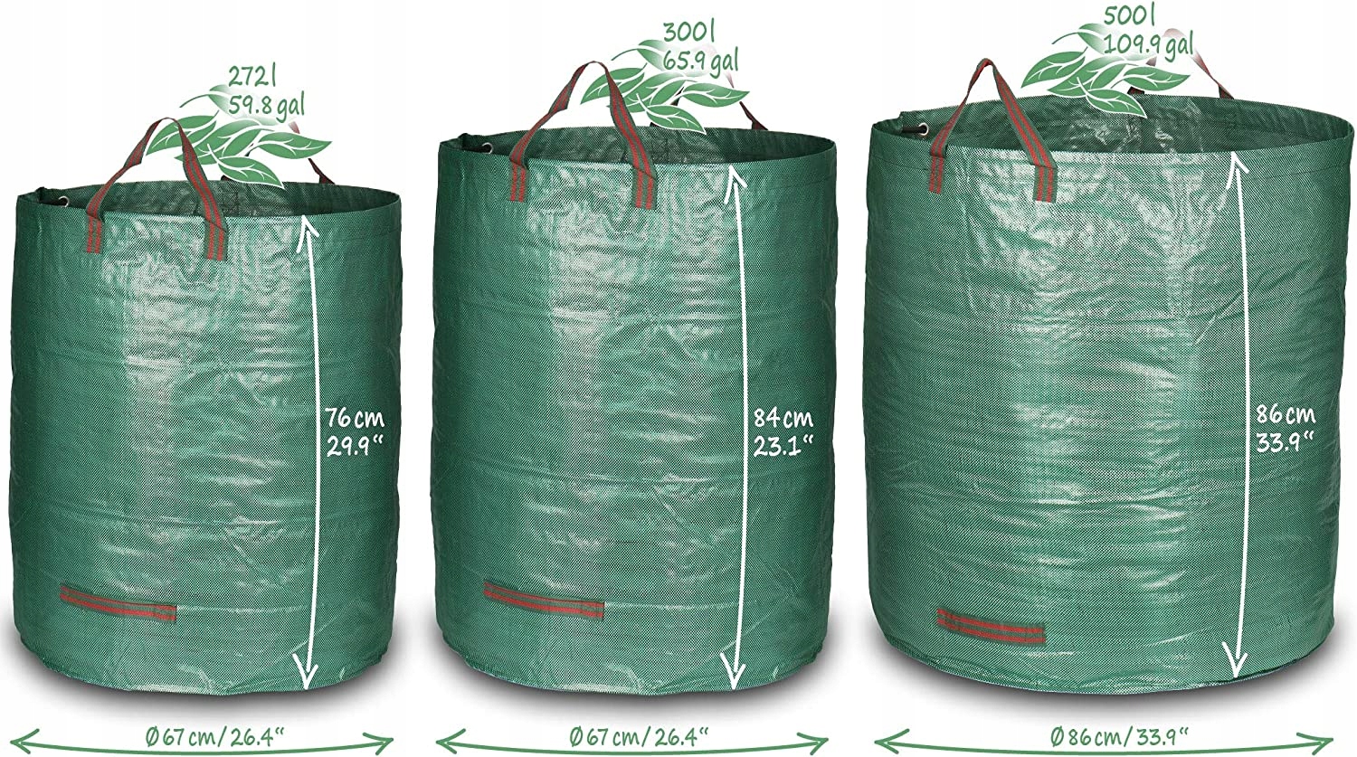 📦 Комплект поставки: 1x мішок для садового сміття XXL, 1x мішок для садового сміття XL, 1x мішок для сміття для садового сміття L