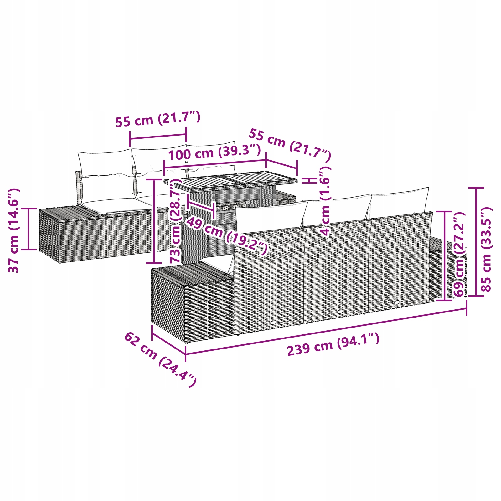 - Різні елементи набору, включаючи бічні дивани з відсіком і садовий столик, пропонують багатофункціональність і гнучкість у розташуванні.