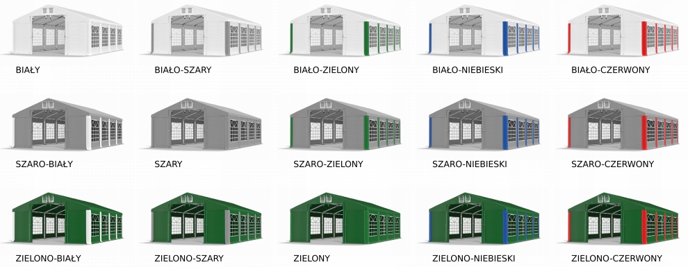 білий, біло-сірий, біло-зелений, біло-синій, біло-червоний, сіро-білий, сірий, сіро-зелений, сіро-блакитний, сіро-червоний, зелено-білий, зелено-сірий, зелений, зелений -синій, зелено-червоний
