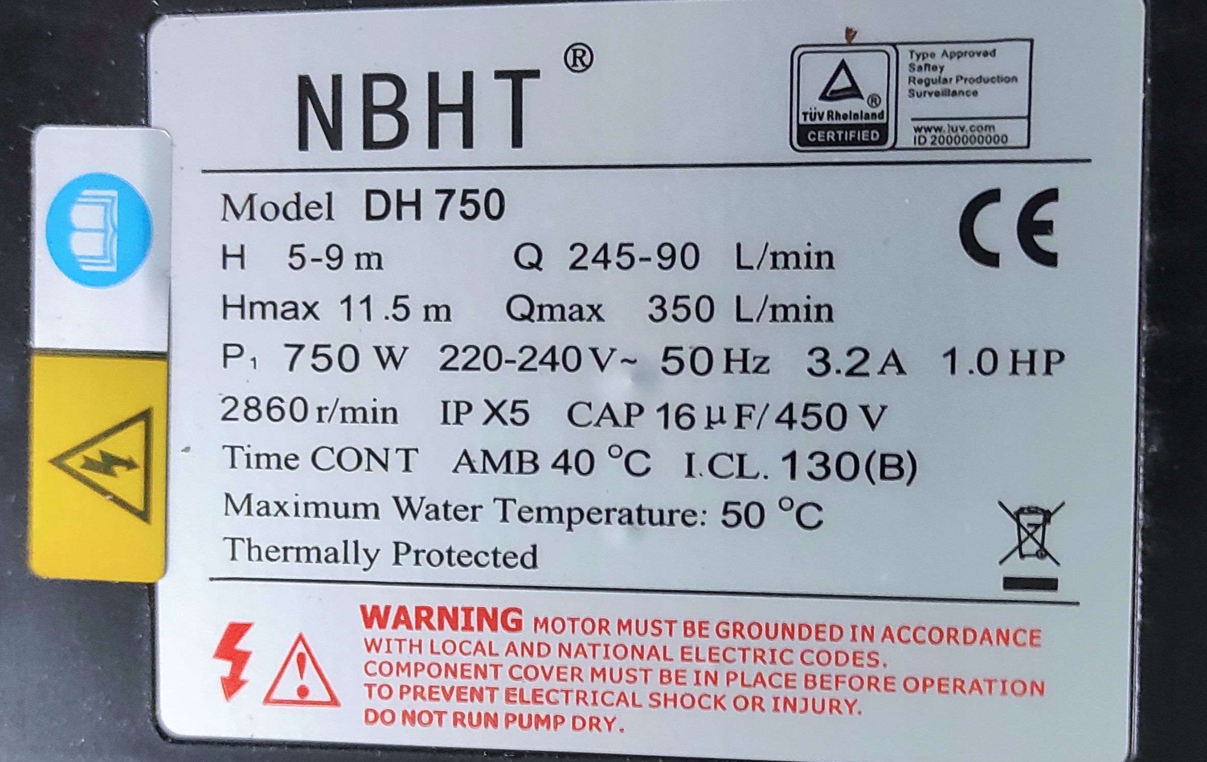 водяний насос для гідромасації для басейну, джакузі, садова куля 220-240V - 50 Гц 750W