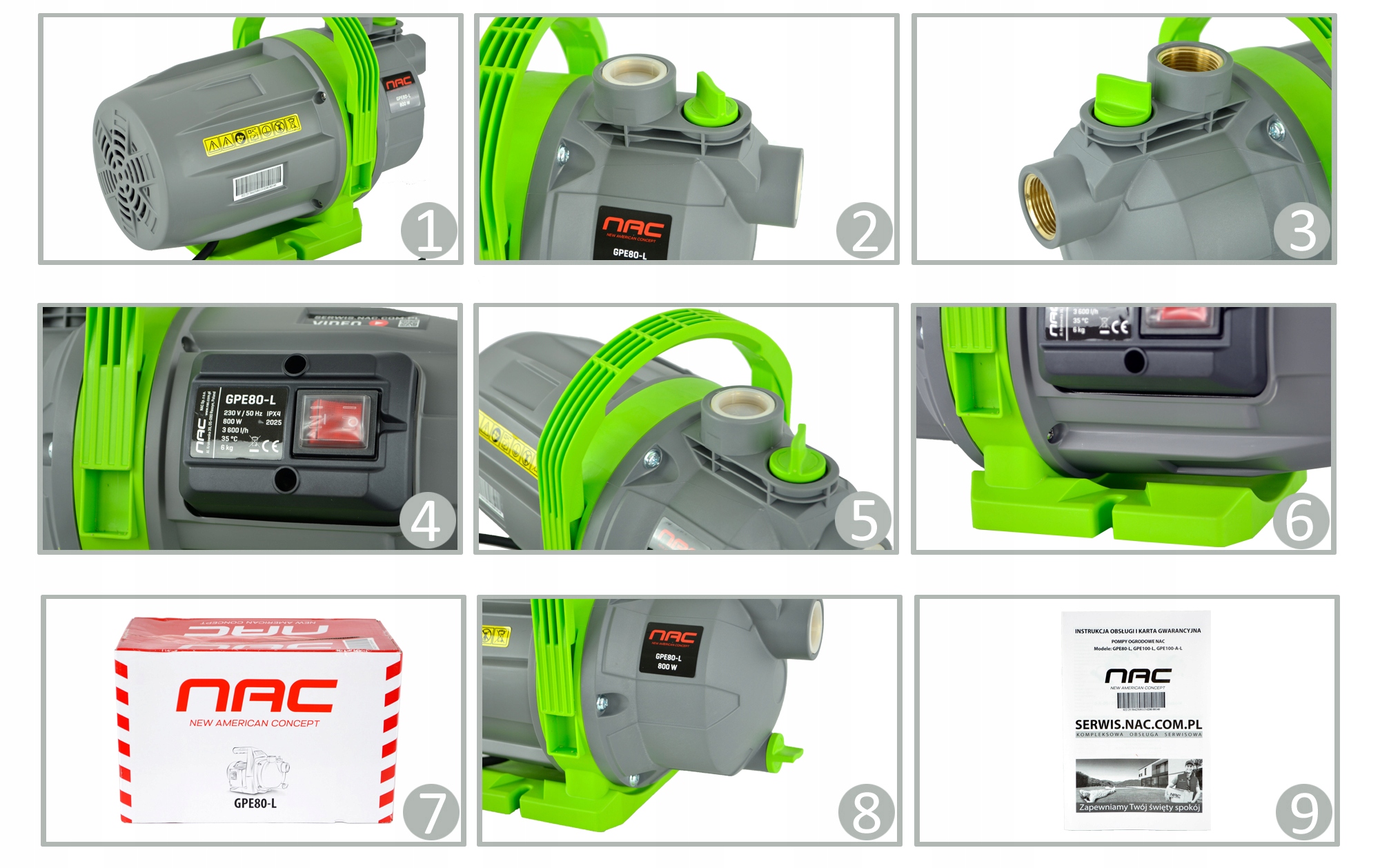 САДОВИЙ НАСОС ДЛЯ ВОДИ NAC GPE80-L 800 ВТ 3600 л/год ДЛЯ ПОЛИВУ ВСМОКТУЄ 7 М
