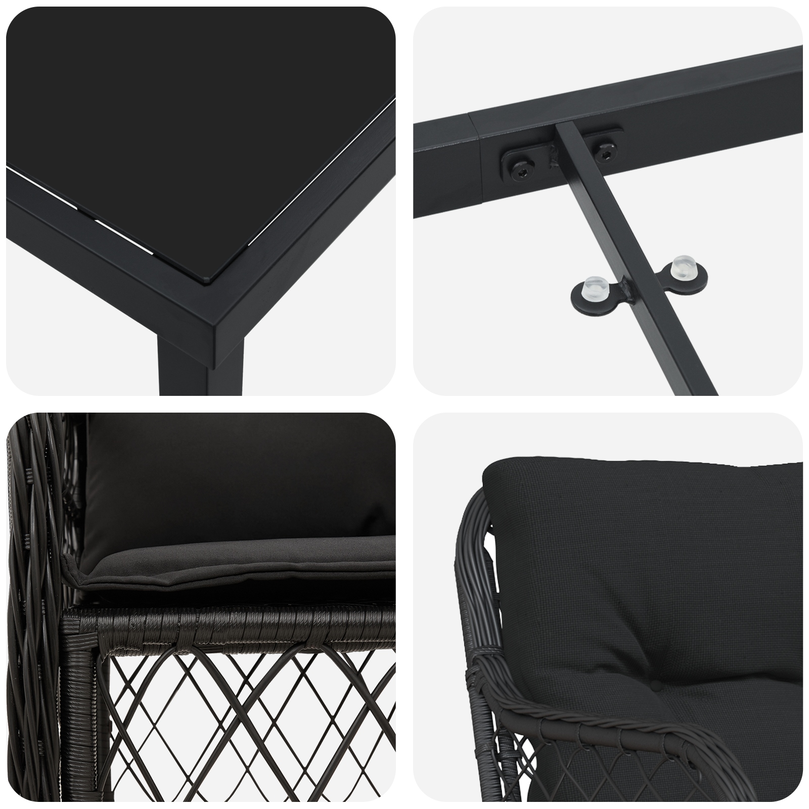 Садовий обідній набір із 3 предметів і подушками з чорного поліротангу