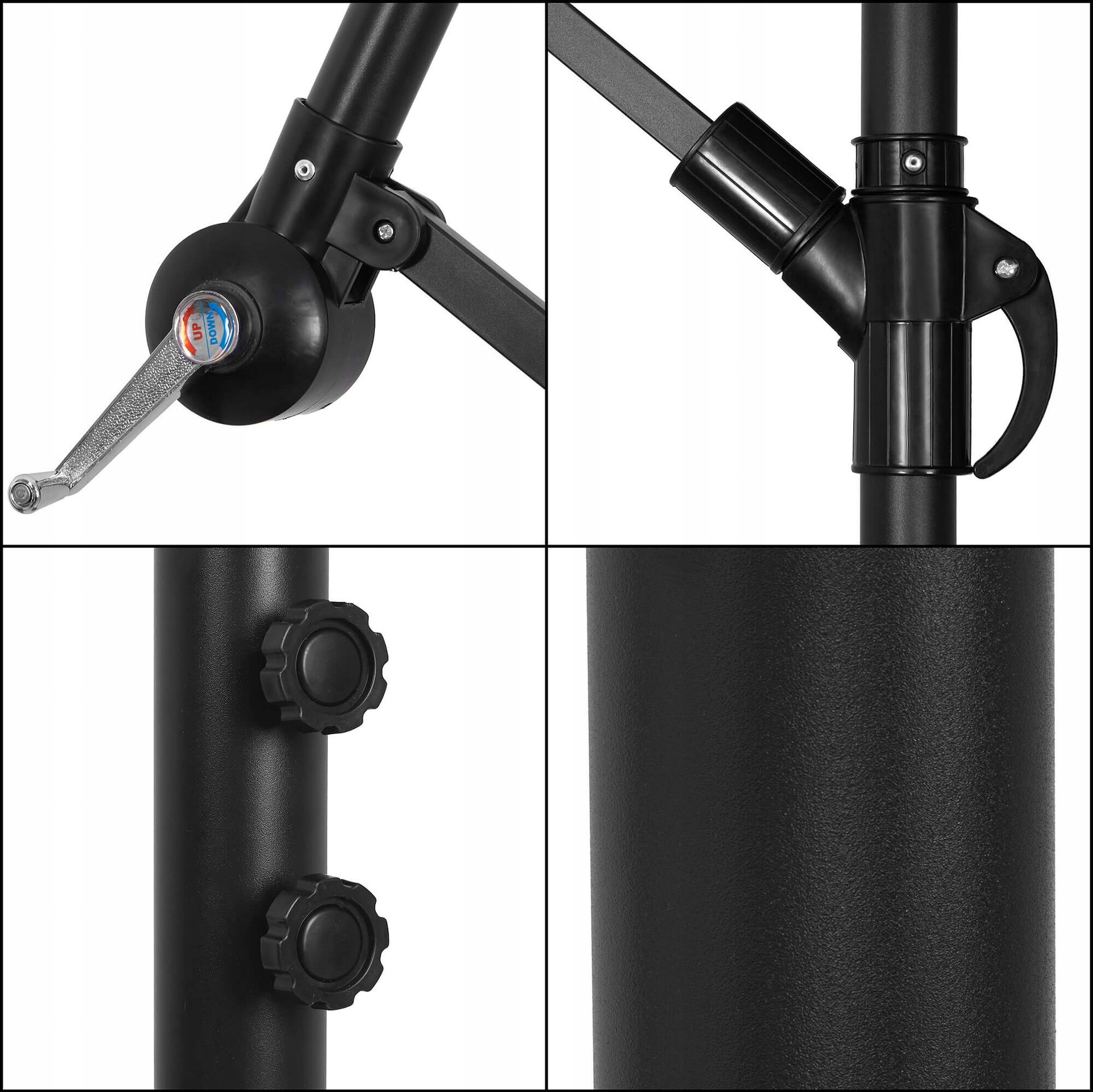Завдяки простим та інтуїтивним рішенням ви можете легко відрегулювати кут парасольки і відрегулювати положення навісу До часу змініть свою висоту над землею.