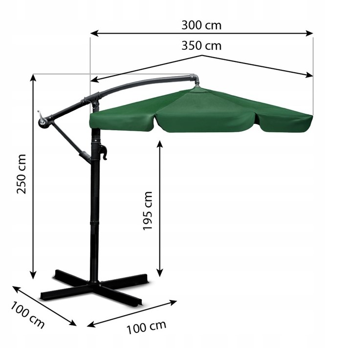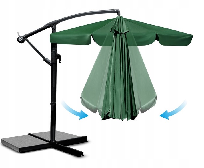 Завдяки великій поверхні навісу (до 3,5 метрів після матеріалу) Парасолька забезпечує ефективне покриття проти УФ -променів та опадів. Виготовлений з густо плетеного поліестеру 180 г/м² , матеріал не тільки захищає від сонця, але й водонепроникний - ідеально підходить для зміни погодних умов.
