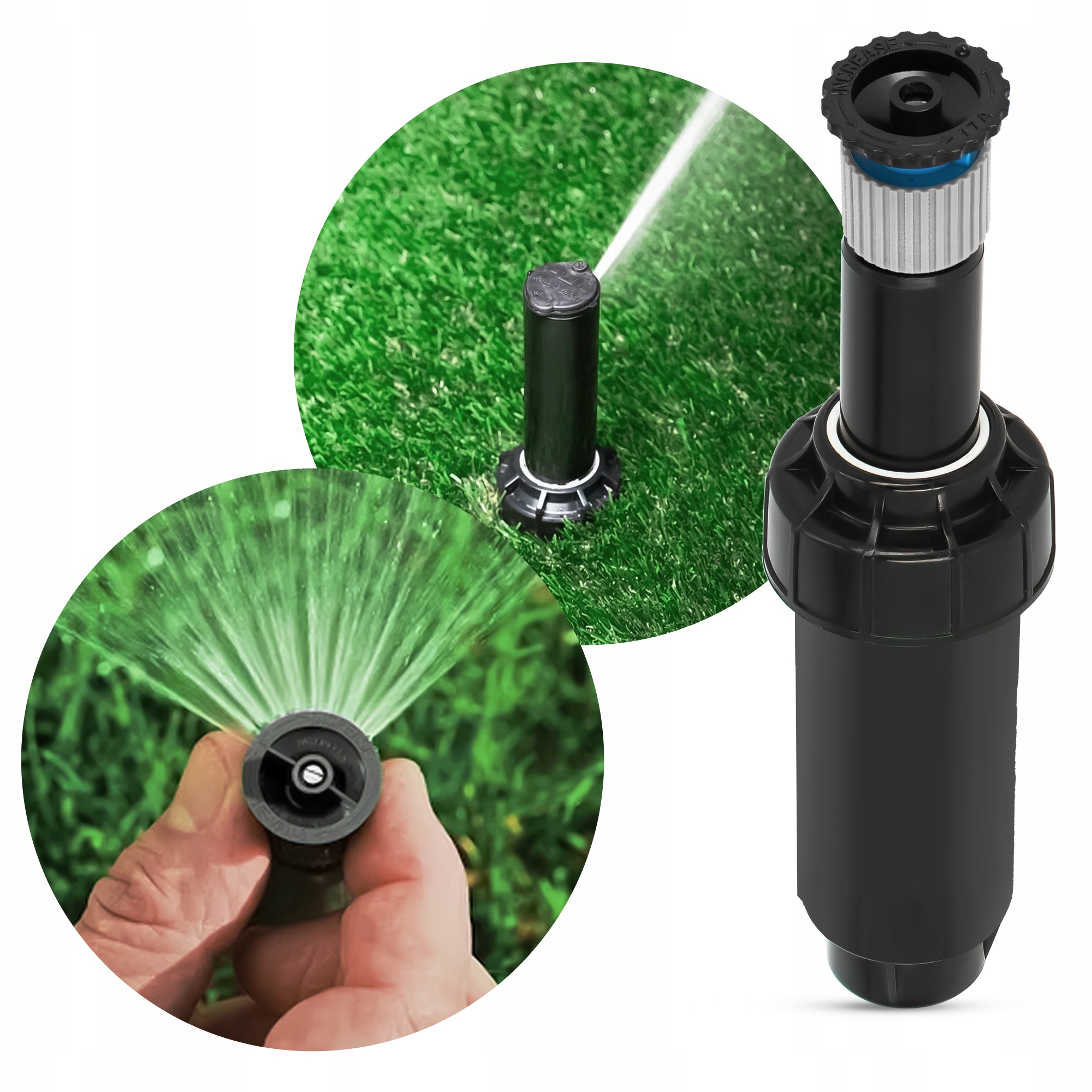 Аварійний спринклер з регульованою насадкою - це набір, який забезпечує адекватну гідратацію зелених областей, знижок та чагарників . Спринклер поширюється під впливом тиску, а в спокої ховається в землі і є невидимим . Завдяки цьому, це гарантує естетичний вигляд зелених областей, де він встановлений.