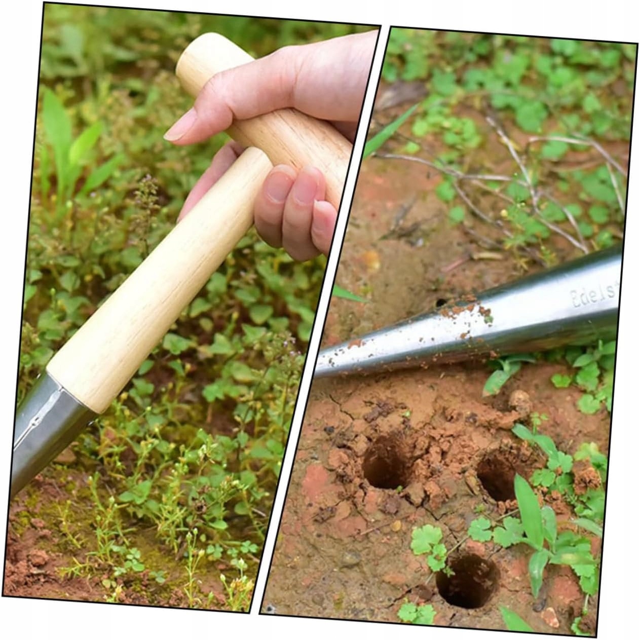 - Точно зрізаний кінець збирача полегшує заглиблення в землю без особливих зусиль, що прискорює процес посадки.