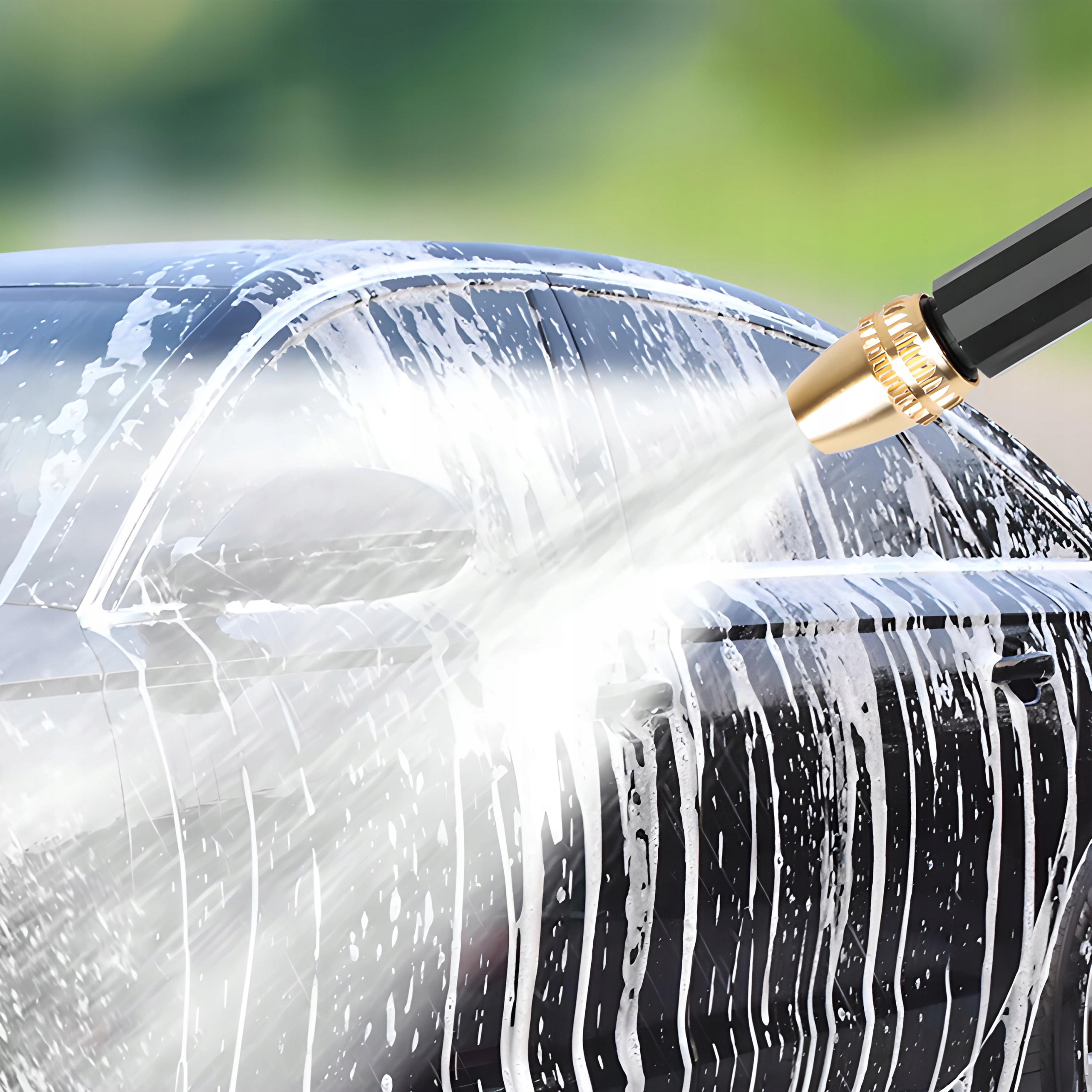 Розпилювач високого тиску оснащений ергономічною ручкою, яка зручно лежить у руці та не ковзає під час використання. Завдяки зручній формі використовувати його легко і комфортно навіть протягом тривалого часу. Металева насадка створює потік води під високим тиском, який ідеально підходить для видалення бруду та пилу з вашого автомобіля.