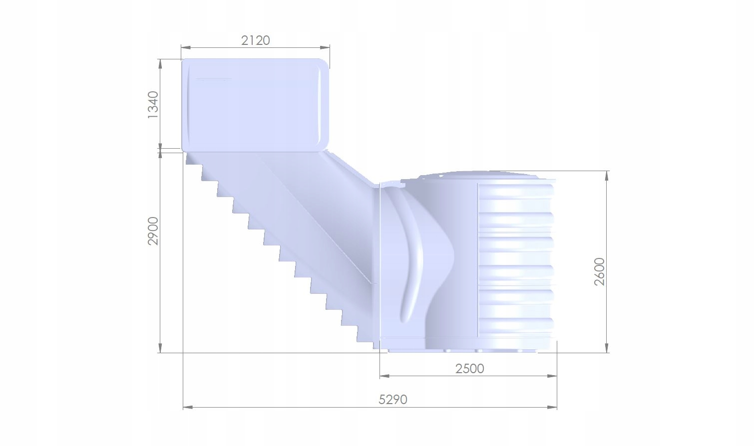 · Розміри підвалу зі сходами 529 х 225 х 290 см (довжина х ширина х висота)