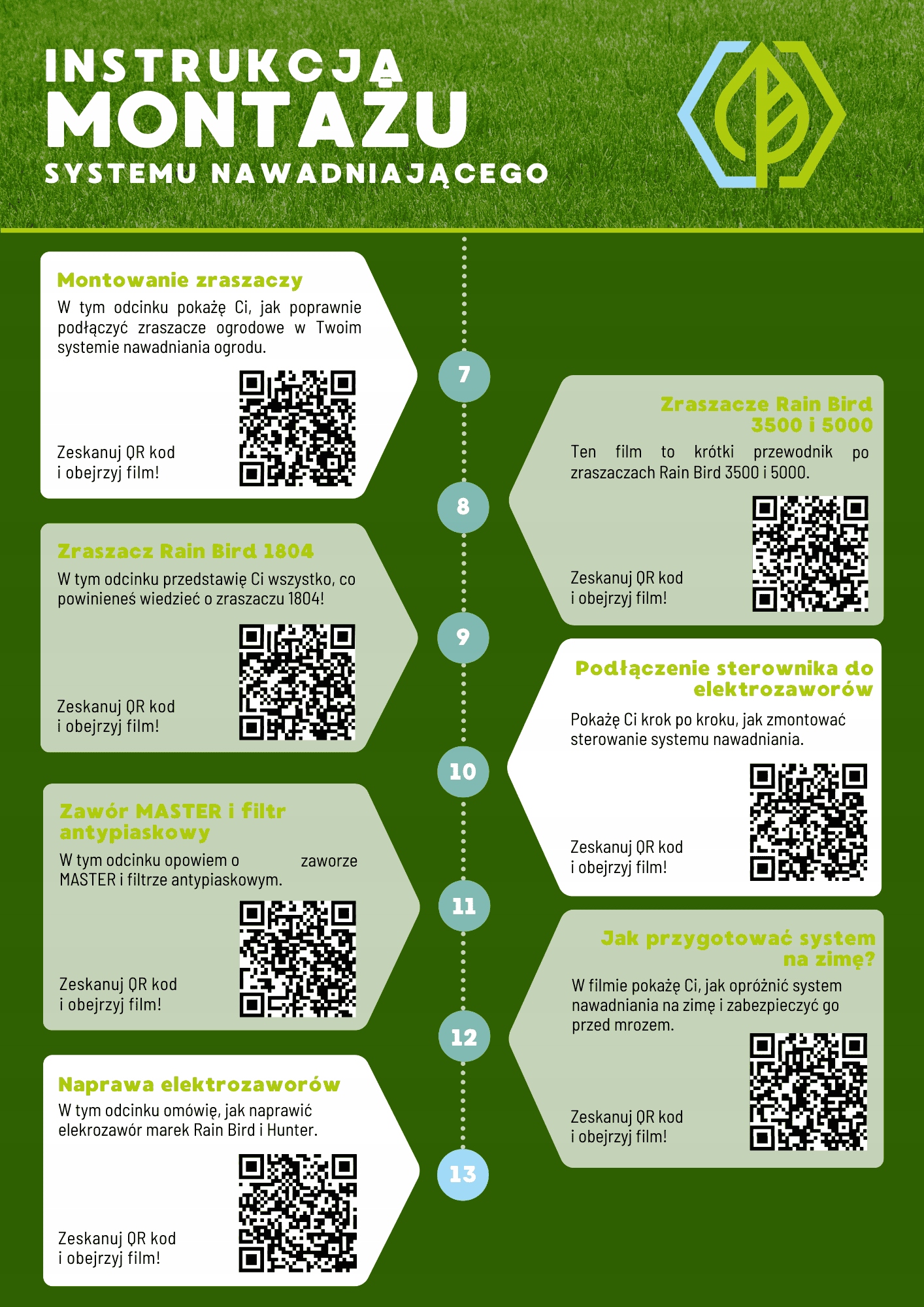 Для полегшення встановлення системи зрошення ми надаємо вам детальні інструкції, що містять QR -коди. Завдяки їм ви можете швидко отримати доступ до відеороликів та додаткових порад, які призведуть до кроку через весь процес встановлення.