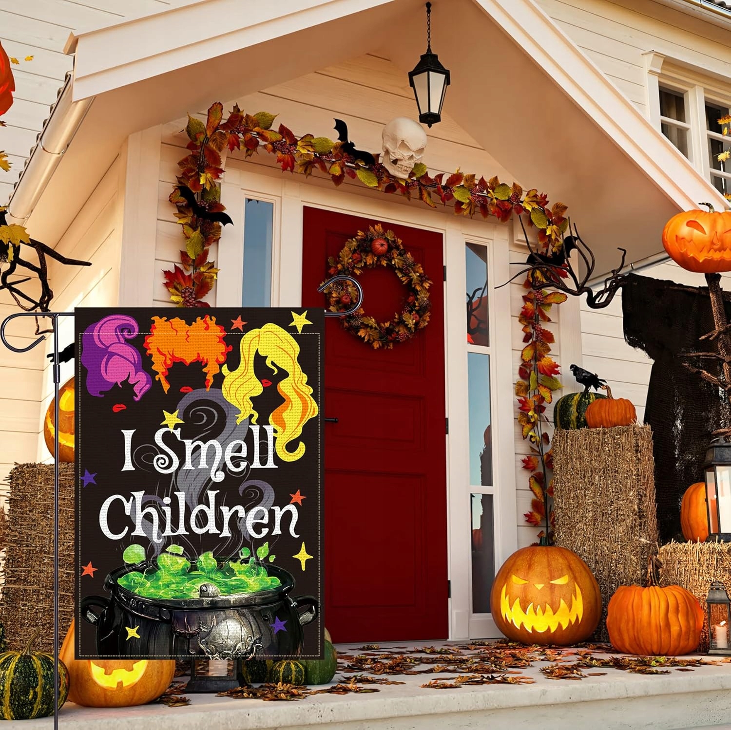 - Прапор на Хелловін: наш прапорець на тему Хеллоуїна, створений за зразком сестер Сандерсон і квіткового горщика, з написом «I Smell Childrendren» він, страшний і моторошний, цілком підходить для Хеллоуїна.