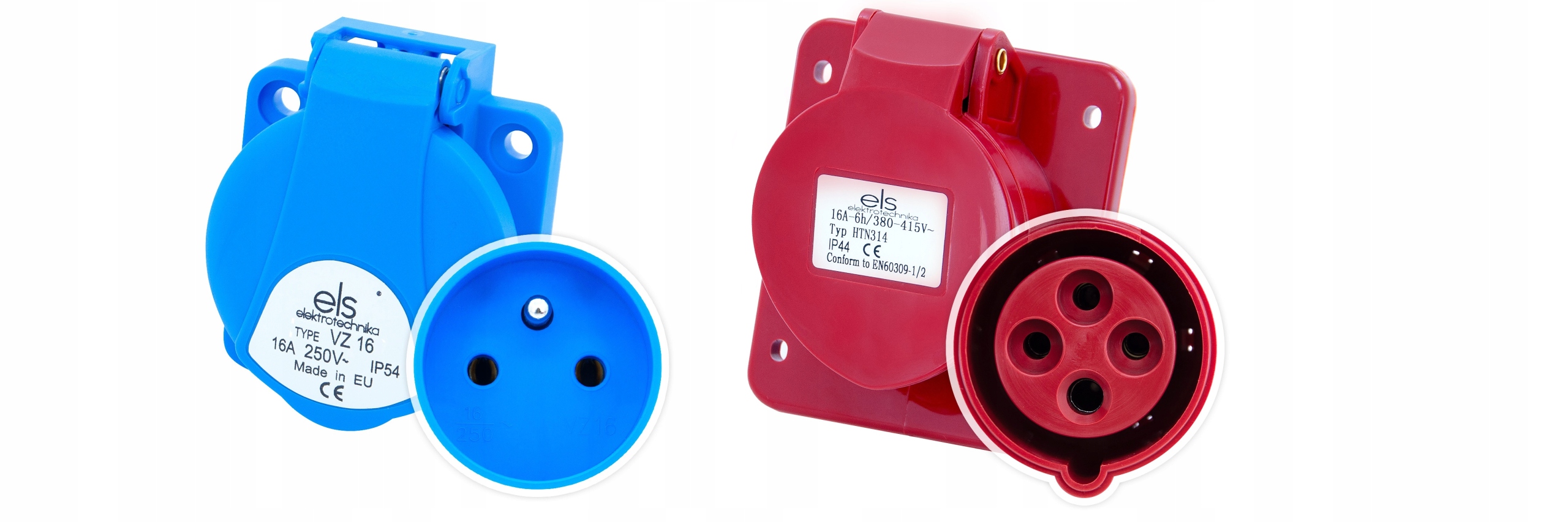 ✅ 2 x Одиночна фаза суцільна розетка з Bolc 16A 230V IP54, повністю провідна з LGY 2,5 мм2 та Забезпеченим C16 1P ,