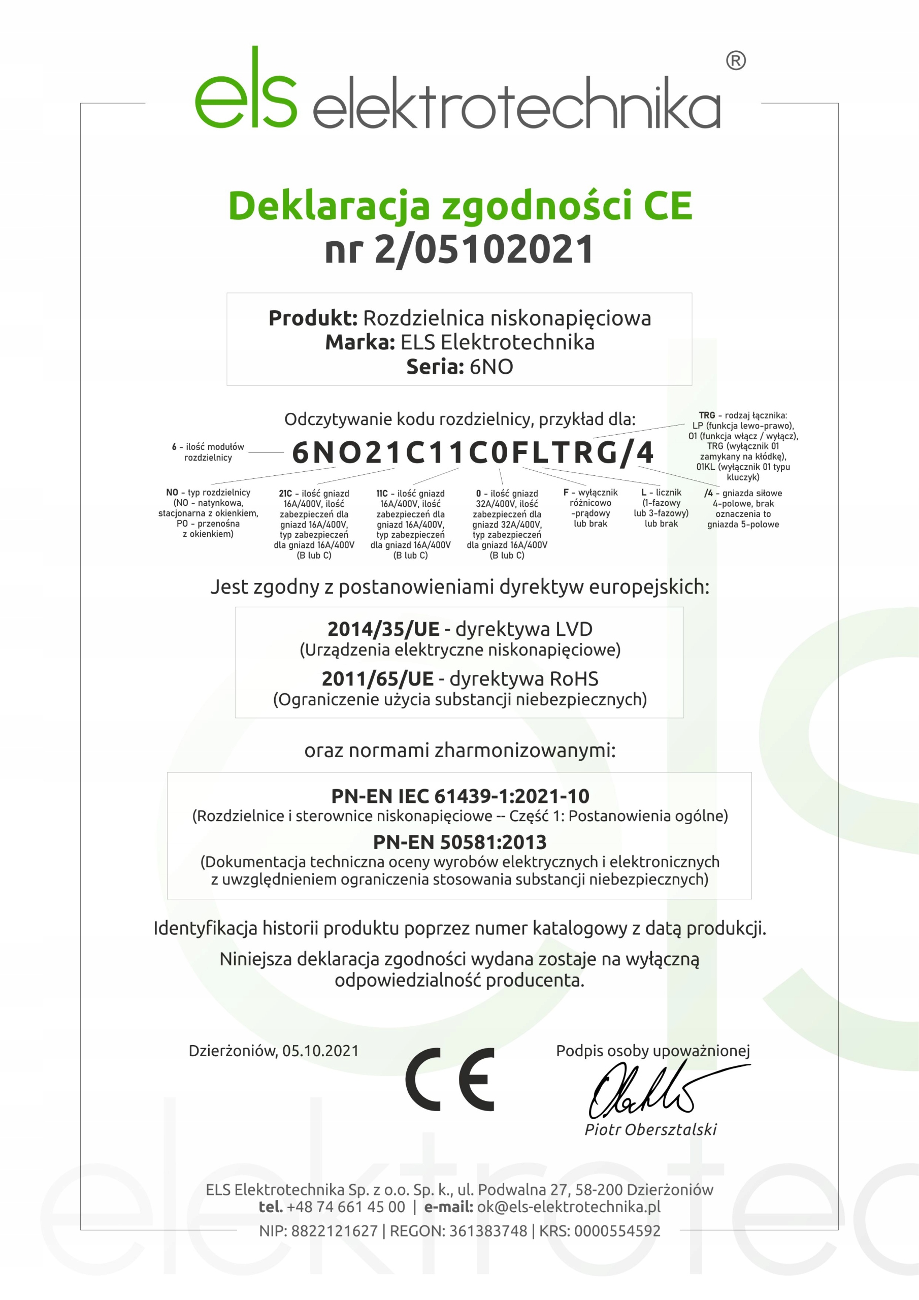Польський продукт + польська марка = гарантія безпеки. Кваліфікований персонал фахівців подає їх вручну, з увагою до деталей на основі компонентів ретельно підібраних постачальників. Кожен розподільний пристрої від ELS Elektrotechnika позначений логотипом виробника.