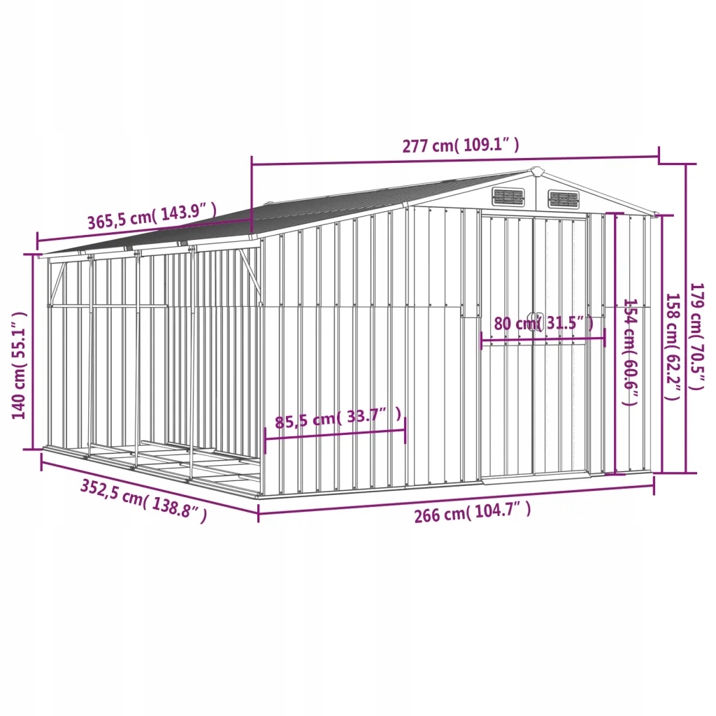 садовий сарай, антрацит, 277x365.5x179 см, оцинкована сталь