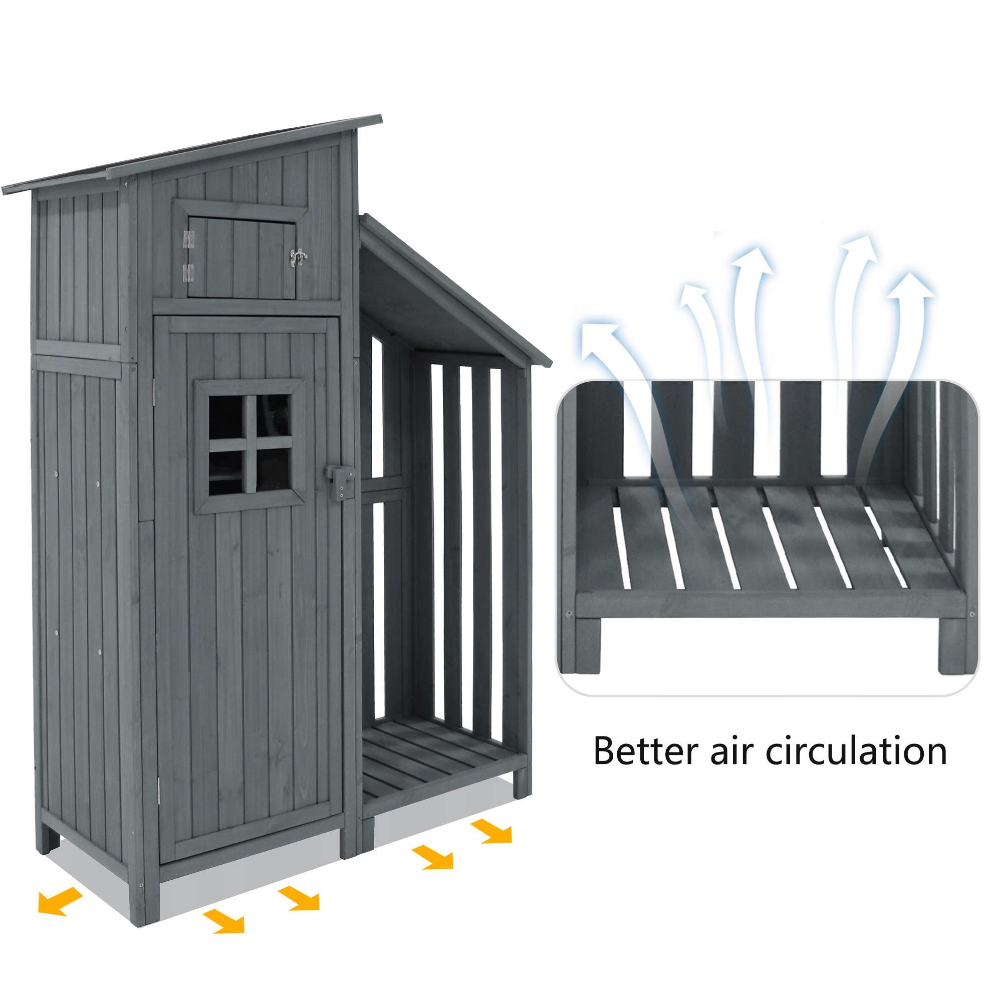 Садовий сарай має великий простір для зберігання, а шафа для інструментів пропонує практичне місце для зберігання стандартних садових інструментів.