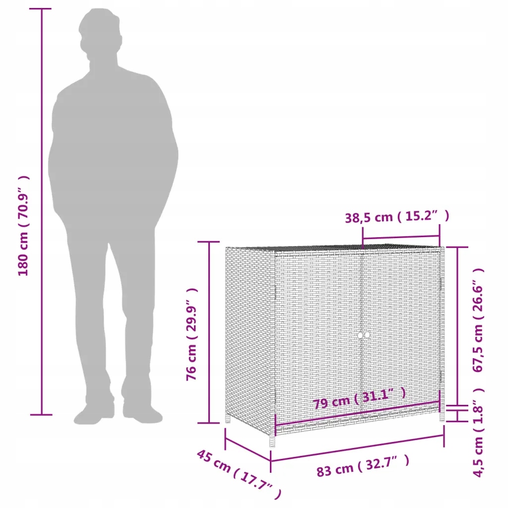 Садовий шафа, коричневий, 83x45x76 см, Поліраттен