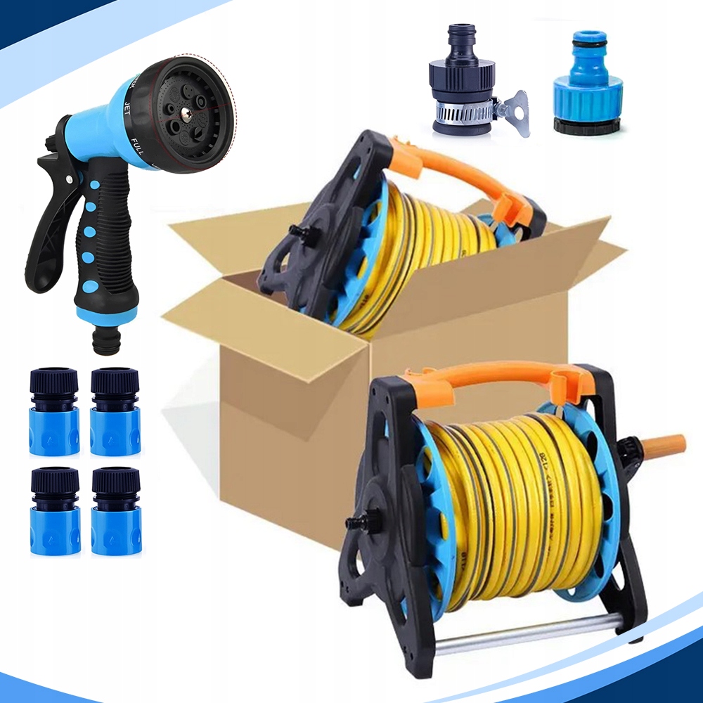 Садовий шланг, випущений барабан 40 м + 7-функціональний пістолет + з'єднувачі та з'єднання �