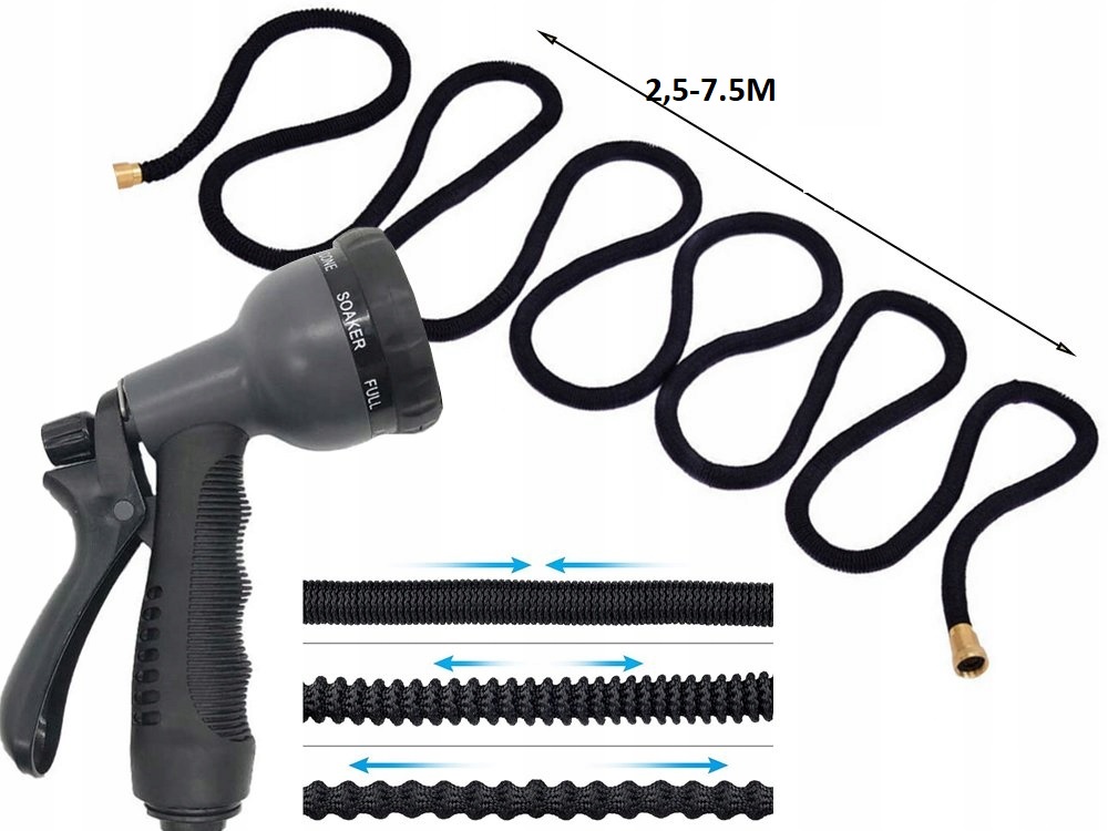 Садовий шланг гнучкий еластичний роз'ємний пістолет преміум -ручка 7,5 м