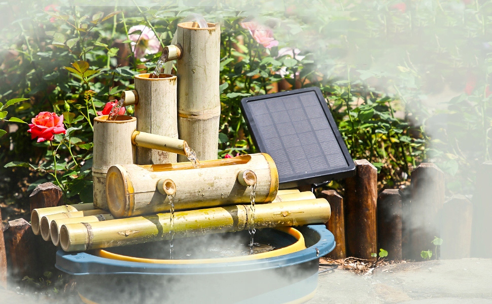 Незалежний сонячний фонтан із суцільними ставками. Вільно переїжджайте в різні місця, без складного встановлення та обслуговування, ви можете насолоджуватися цікавим садовим життям. Кабель між сонячною панеллю та насосом досить довгий, щоб покрити відносно велику площу, не боячись, що насос не буде працювати в тіні.