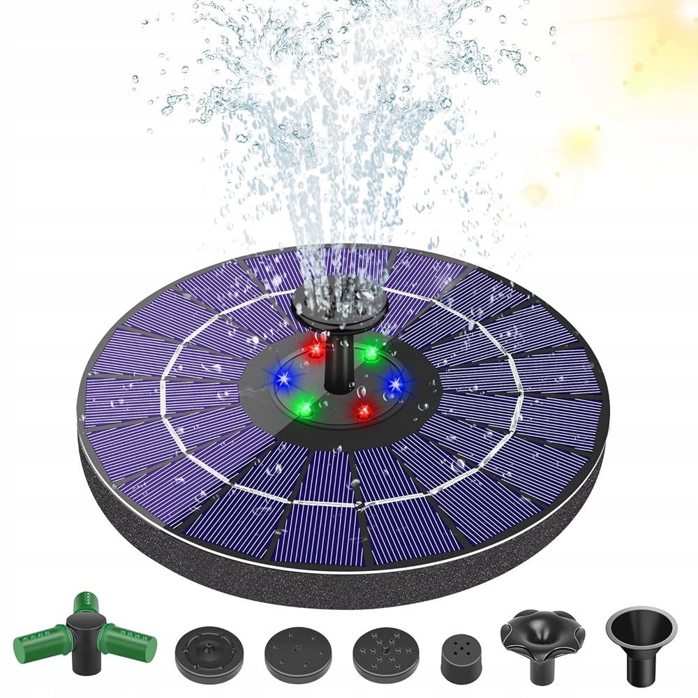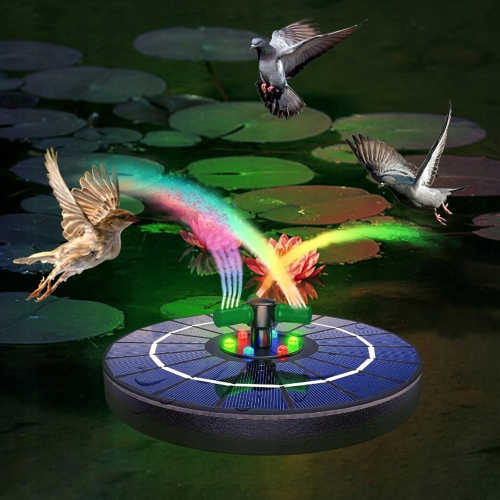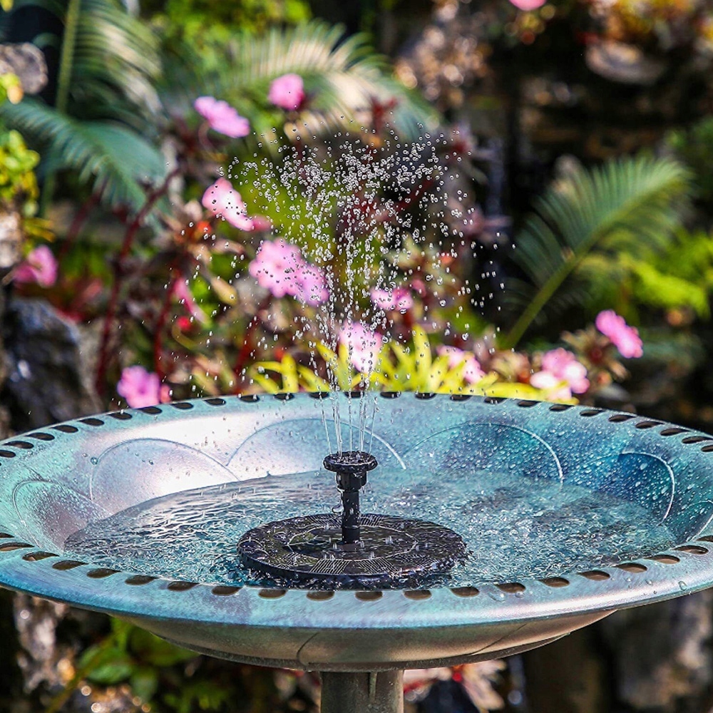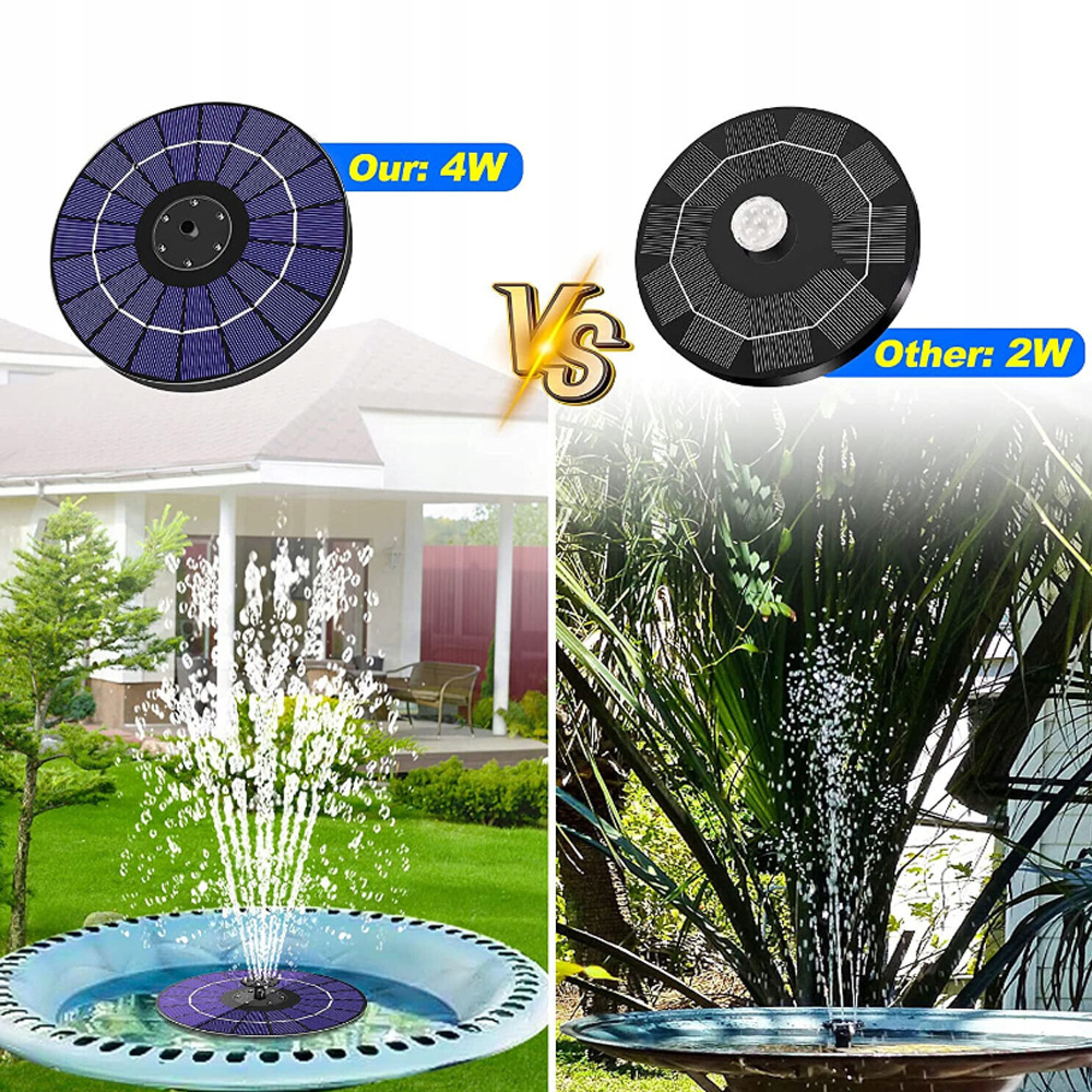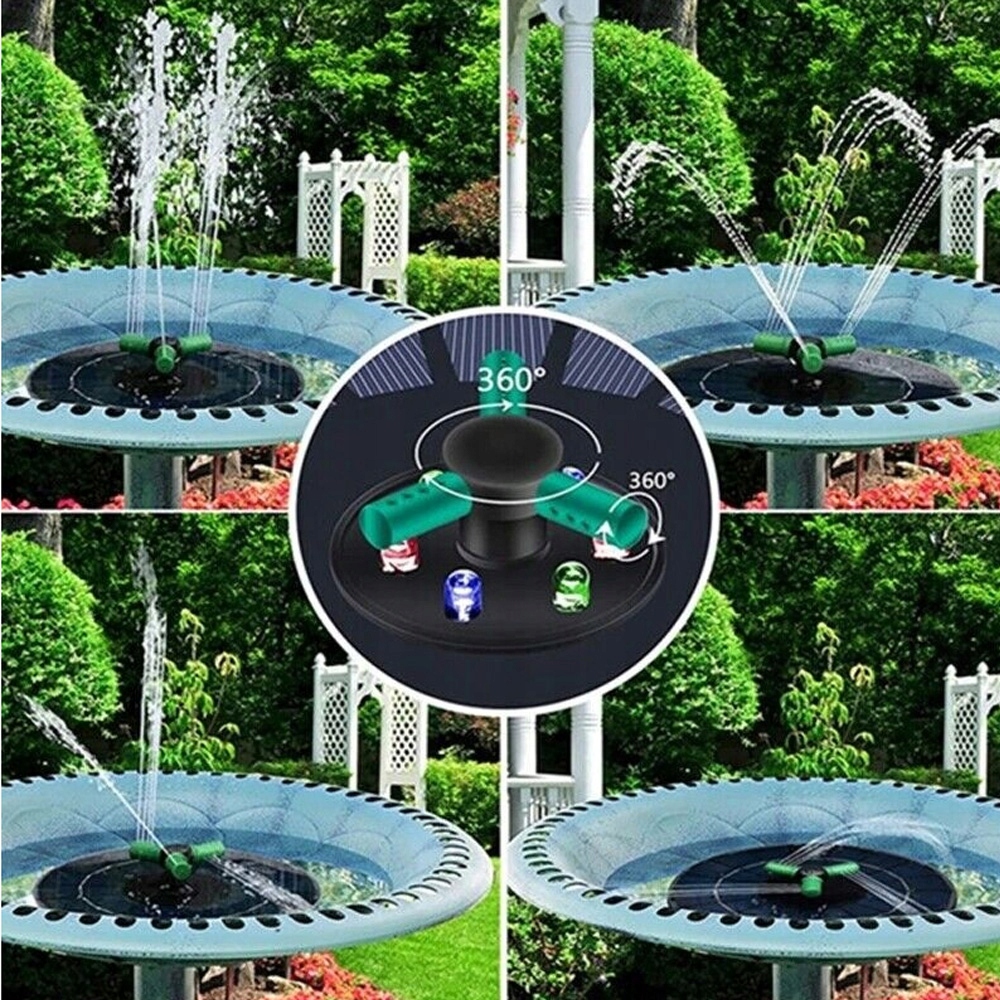 Сонячний фонтан для птахів має 7 форсунок і може відповідати різним вимогам висоти та форми водного потоку. Фонтан сонячної енергії може запускати автоматично протягом 3 секунд при прямих сонячних променях. Найголовніше, що він залучить до саду багатьох колайбер, щоб вони п'ють воду та грати!