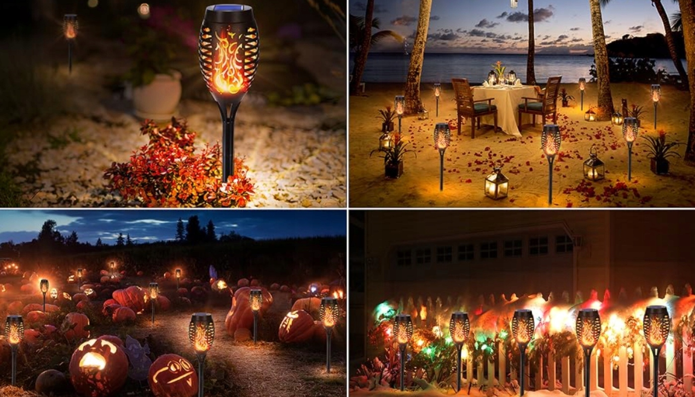 Садовий сонячний лампа древреїфт полум'я ефект пошкоджений декоративний 4 шт
