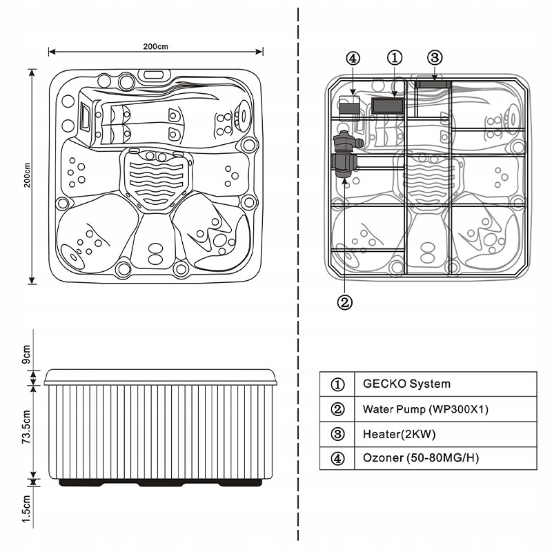 Розширені функції, включаючи 36 форсунок гідромасажу , точний контролер Gecko , терапія світлодіодної кольору та дезінфекція озону , гарантують повну релаксацію в чистому, нагрітому воді. Завдяки аудіосистемі з Bluetooth Ви можете насолоджуватися улюбленою музикою під час купання, створюючи унікальну атмосферу розслаблення.