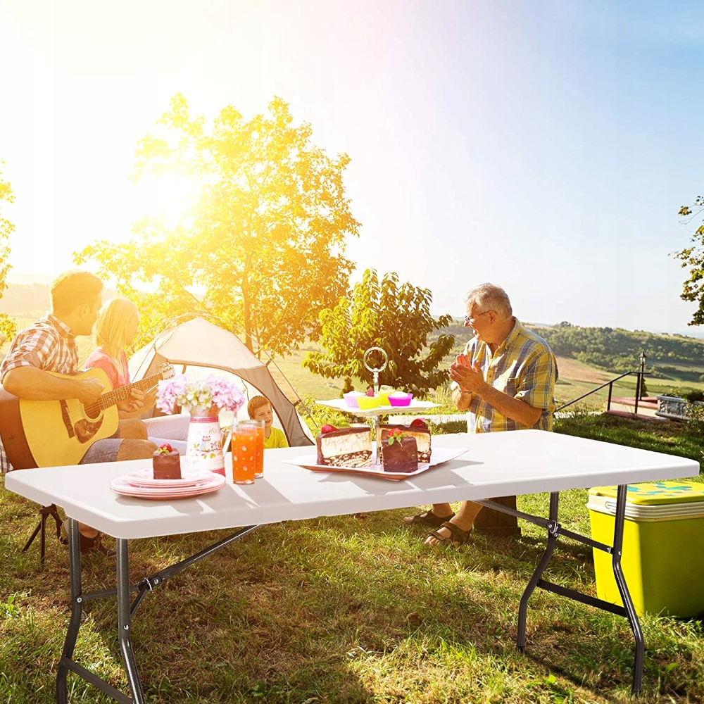 Складна таблиця харчування з розміри 180 см х 74 см. ідеально підходить для заходів компанії та сімейних зустрічей у саду. Завдяки поєднанню білої стільниці та сірих ніг ідеально відповідатиме кожному оточенню та прикрасі. У той час як сталевий каркас, що розповсюджується, .