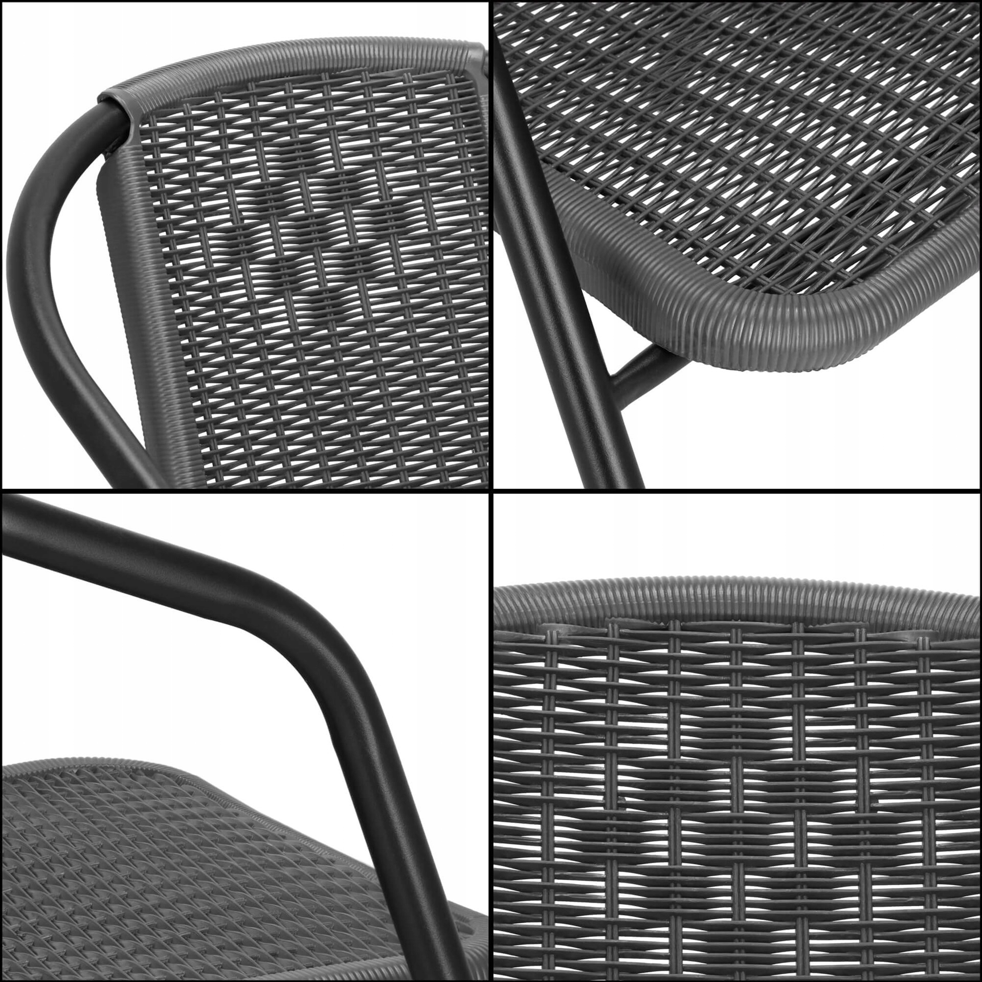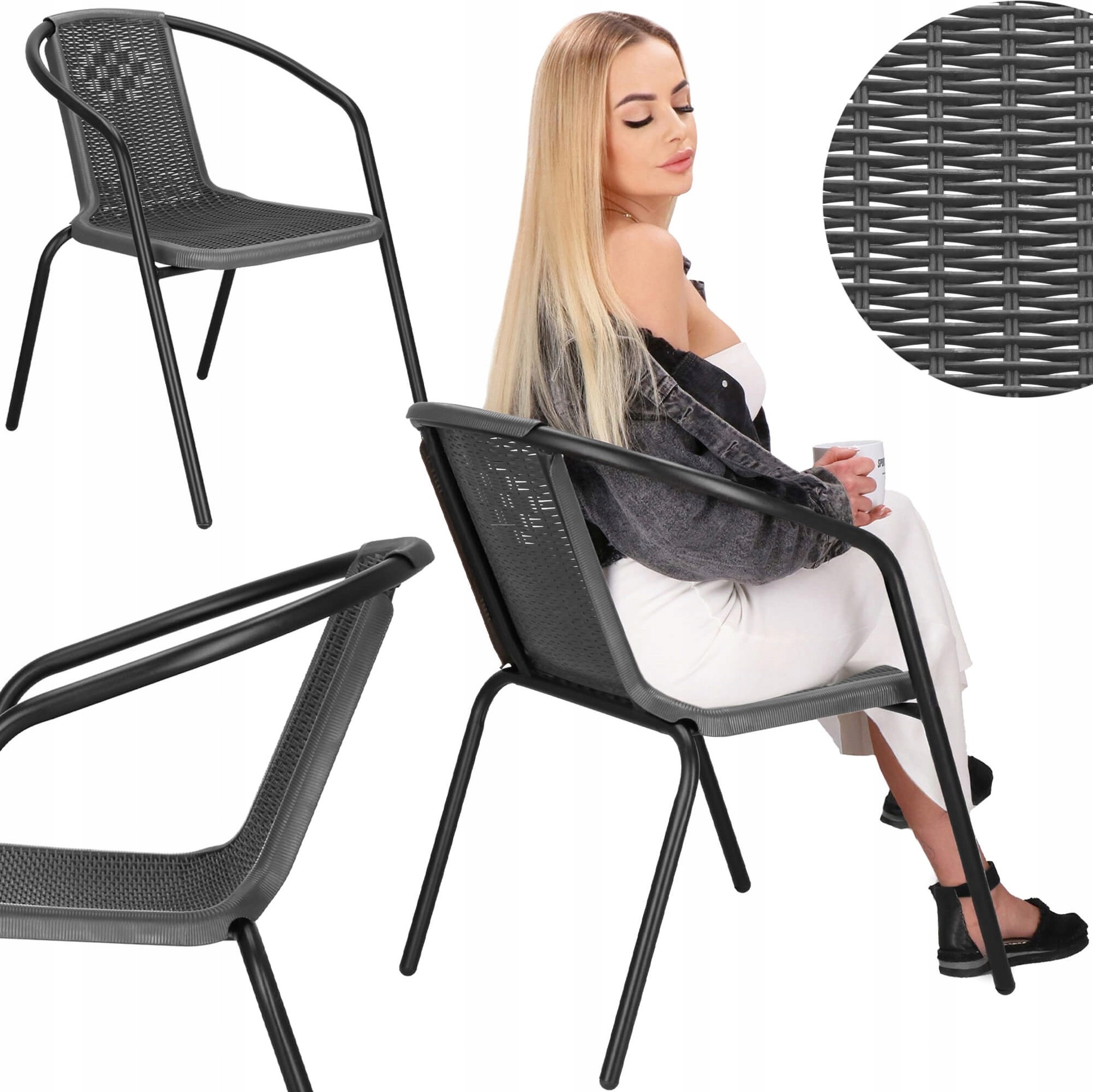стільці бренд springos® ідеально доповнить сад, терасу або балкон, що дає приємне місце для відпочинку. Продукт має металеву чорну раму та сидіння з спинкою, виготовленою з пластику, що імітує ротанг. Весь виглядає дуже затишно, саме тому він чудово доповнює розташування кожного саду.