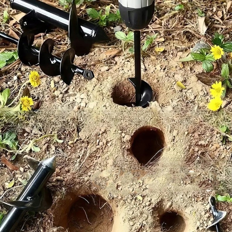 спіральна структура, яка полегшує буріння в землі. Використовуйте свердло ґрунту в потрібній області з низькою швидкістю та посміхніться під час роботи. Ярок можна просвердлити за кілька секунд.