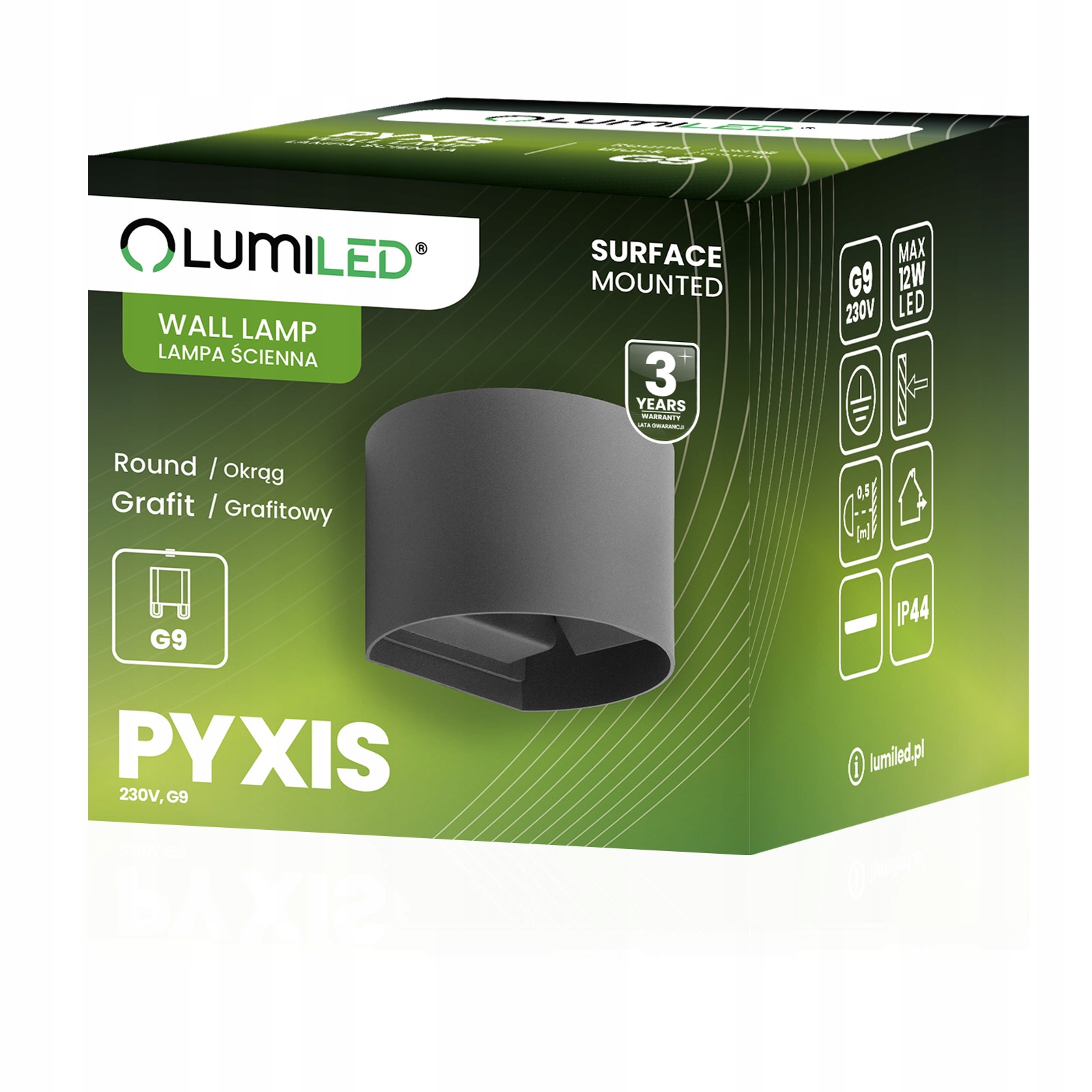 Садова лампа, чорна настінна лампа Pyxis, луматна -це в першу чергу сучасний зовнішній вигляд та клопоту. Призначений для монтажу поверхні на фасадах будівлі.