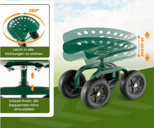 садовий табурет, садове сидіння на колесах, садовий табурет, садовий табурет, регульоване сидіння, поворотний табурет на 360, сидіння COSTWAY, садовий табурет