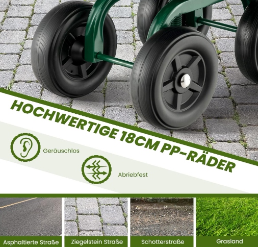 Садовий табурет COSTWAY на колесах, регульований, 150 кг, поворот на 360°