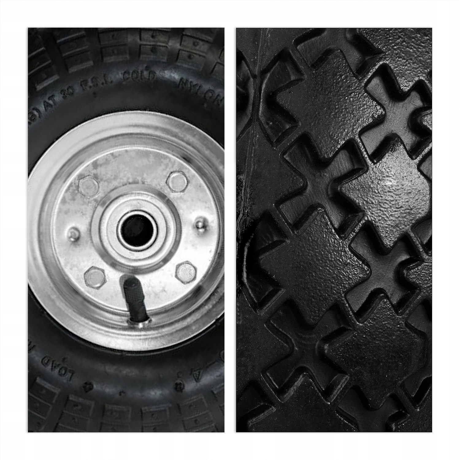 Практичні та міцні шини та надувні колеса є основою продукції VACO. Велика ширина та діаметр коліс 250 мм гарантують надзвичайну універсальність у маневруванні та поворотах під великими навантаженнями. Відновлені шини забезпечують чудове зчеплення, а амортизація камери ефективно зменшує вібрацію під час руху.