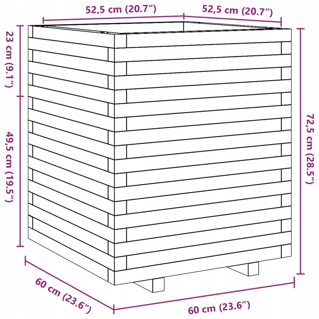 Горщик для квітів садовий, 60x60x72,5 см, масив дугласії