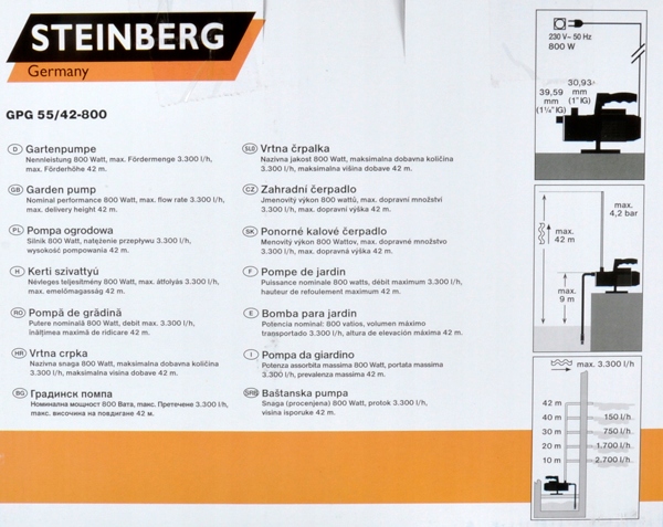 Садовий водяний насос GPG 55/42 з чавунним корпусом насоса характеризується високою стійкістю до механічних пошкоджень, дуже тихою роботою та високою ефективністю при низькому енергоспоживанні.