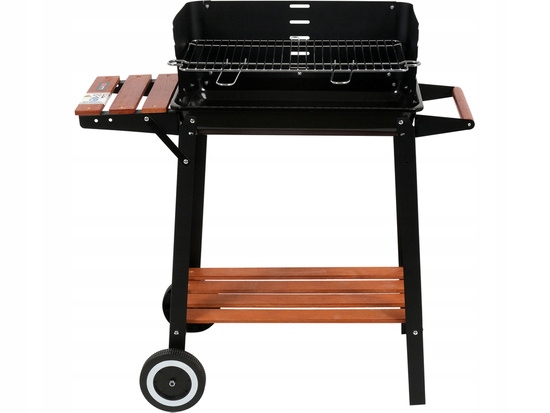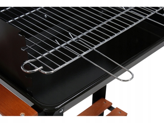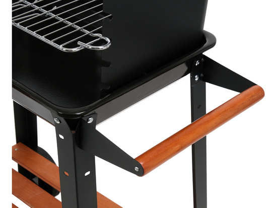 - Дерев’яна нижня полиця полегшує зберігати аксесуари та вугілля