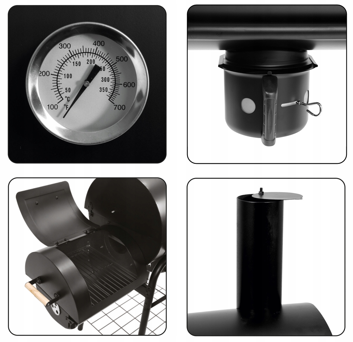 - металеві, емальовані кришки з дерев'яними ручками полегшують підтримку та контроль температури, зберігають аромат диму, що надає стравам аромат