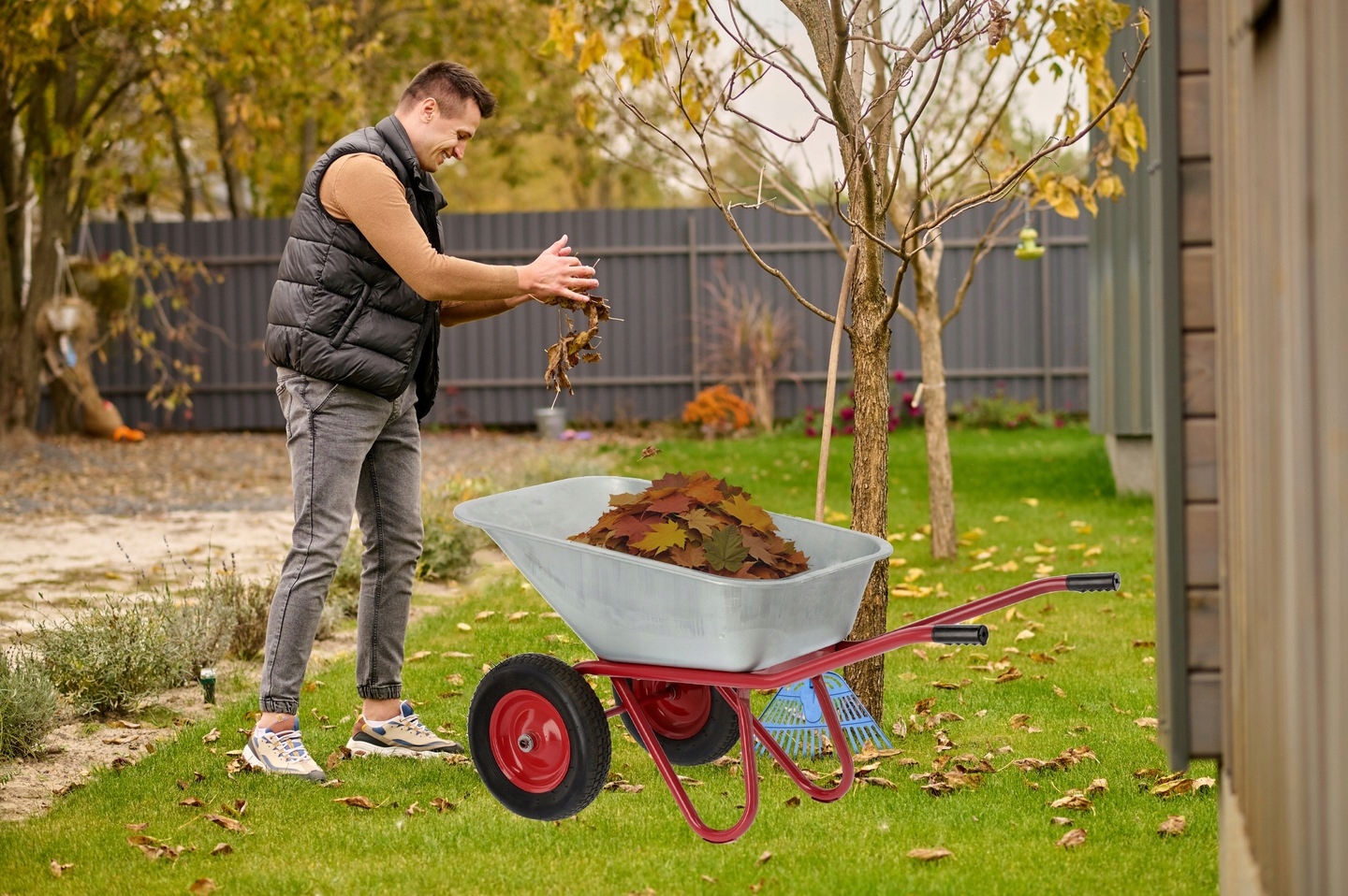 Дозволяє комфортно та надзвичайно легко транспортувати вантажі; скошена трава, листя, земля, пісок, каміння, щебінь тощо
