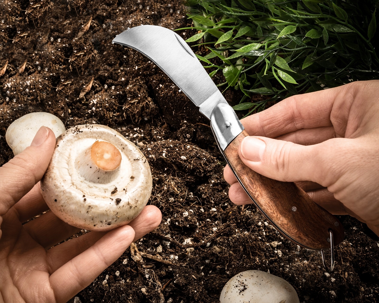 Практичний складаний ніж для роботи в саду та городі, а також для поїздок у ліс по гриби. Ергономічна дерев'яна ручка і широке лезо з міцної нержавіючої сталі з фіксатором леза - основні переваги ножа. Ідеально підходить для обрізки пагонів і гілок, а також для щеплення дерев і кущів. Він однаково добре підійде під час збирання грибів чи походу.