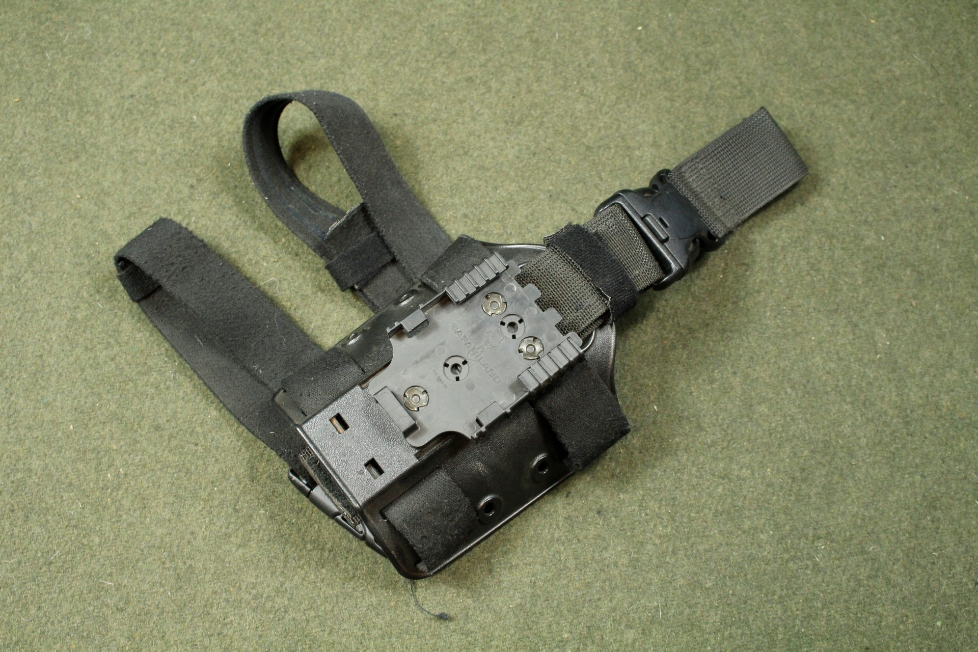 Safariland STX стегнова панель для пістолета є міцним і надійним рішенням для тактичних застосувань. Він був спеціально розроблений для професійного використання та забезпечує певний зчеплення та швидкий доступ до зброї. Характеристики: - QLS (Швидка система блокування) Отримання плитки для монтажу кобурів - Матеріал: Тактика STX - міцний, текстурований полімер - Стиль носіння: для правого - кріплення - кріплення: платформа ноги з регульованими ремінцями для оптимального пристосування - Застосування: Ідеально для поліції, армії, безпеки та сил безпеки для безпеки та продуктів.