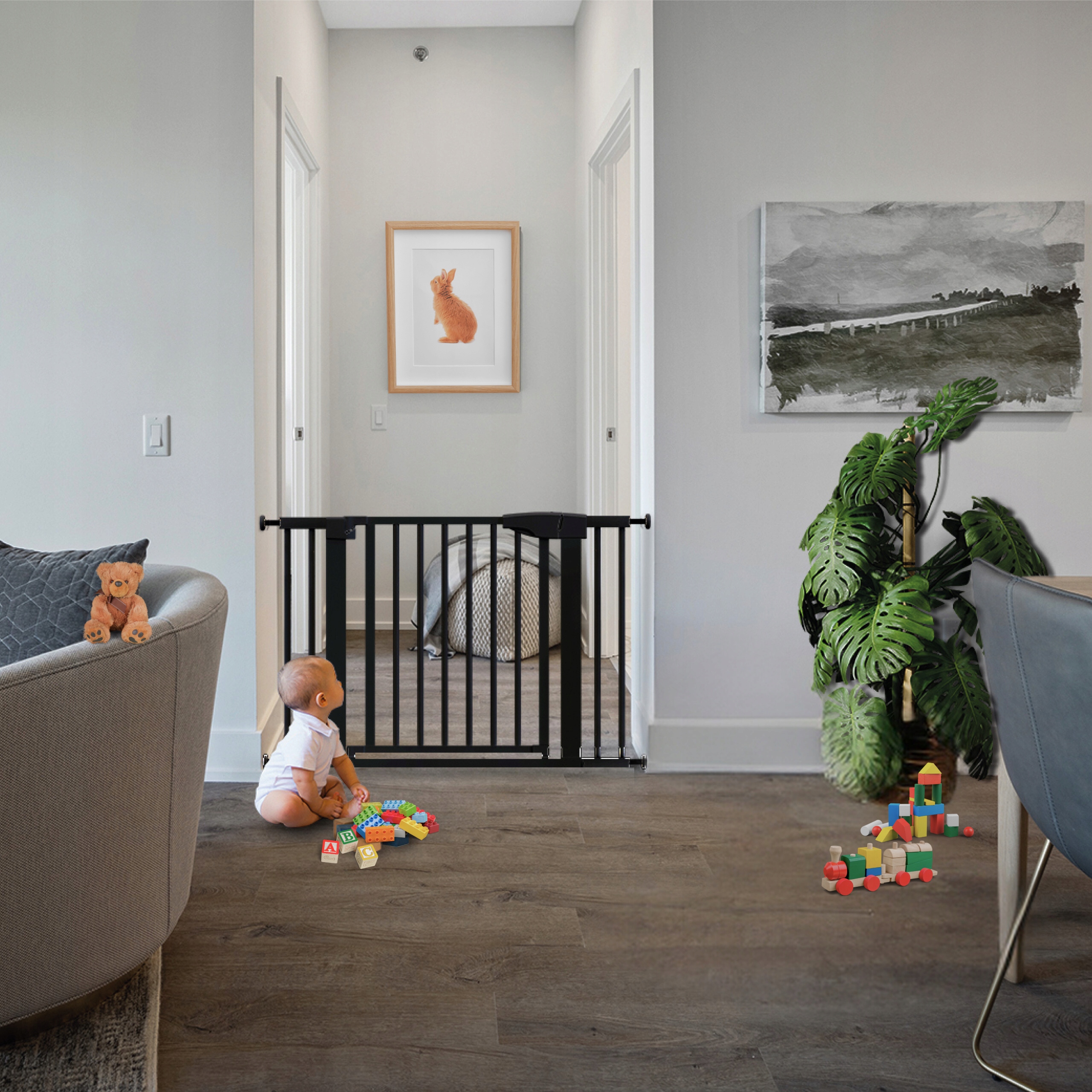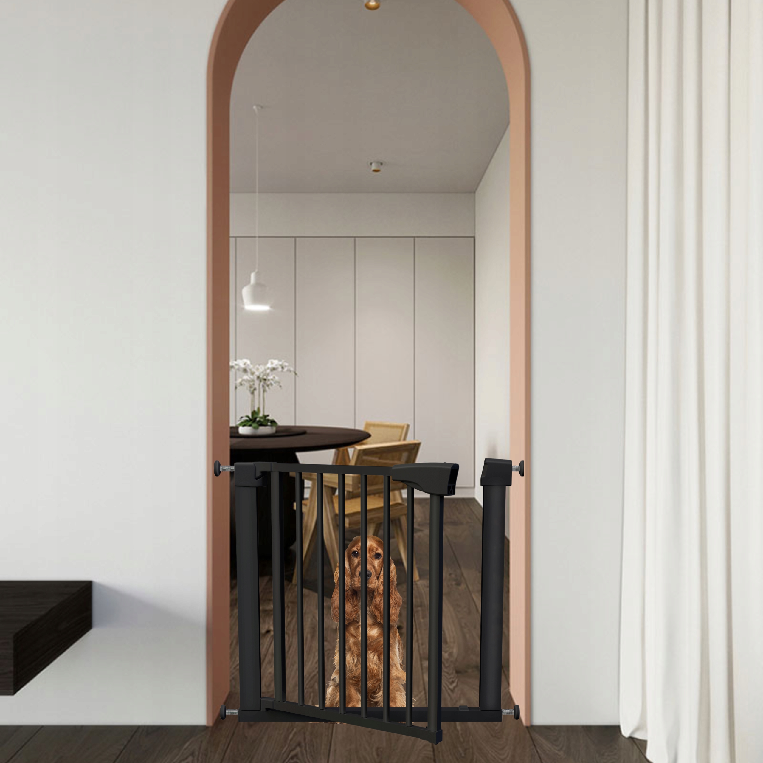 ➡️Це ідеальне рішення для орендованих квартир, де будь-яка зміна конструкції може бути проблематичною. Бар’єр стійко тримається завдяки розпіркам, які м’яко притискають його до стін або дверних коробок.